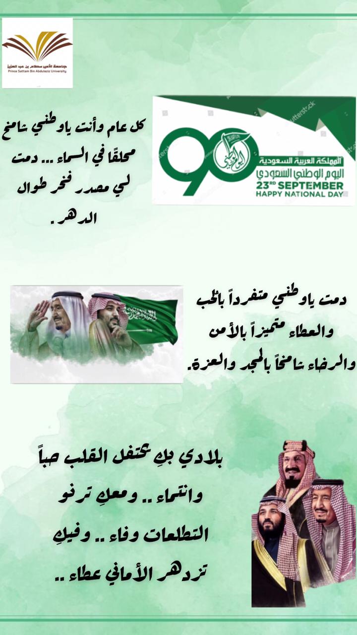 وتلا ذلك عرض لوثائقي عن توحيد المملكة العربية السعودية عاد بالحضور إلى ذاكرة التاريخ وذكرى بطولة أسست مجدا يشع تحت راية التوحيد, ثم كان للشعر حضوره وروعته حيث القت الدكتورة: سحر الدوسري من قسم اللغة العربية قصيدة باللغة العربية الفصحى عبرت من خلالها عن حب الوطن وتلا ذلك مشاركات من قسم الدراسات الإسلامية وقسم اللغة العربية وقسم التربية الخاصة وقسم رياض الأطفال وقسم العلوم التربوية وقسم العلوم الاجتماعية وقسم علم النفس وقسم المناهج وطرق التدريس وحدة العمل التطوعي والنشاط الطلابي والمجالس الطلابية وكانت المشاركات عبارة عن عروض بوربوينت و مقاطع فيديو جميعها تعبر عن احتفاءها باليوم الوطني وذلك حسب الصور المرفقة .