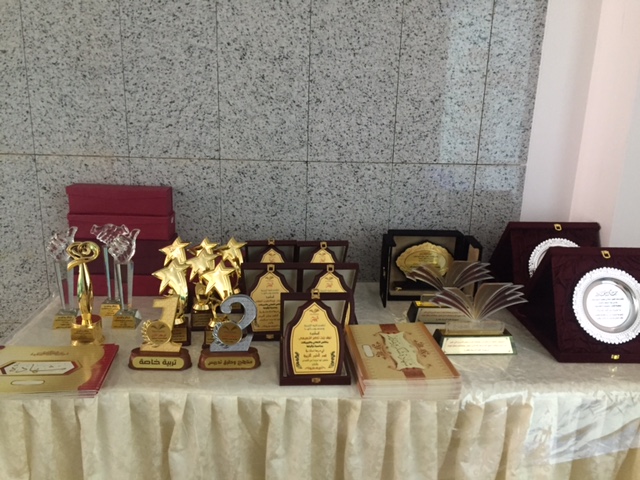 وتم تكريم المتعاونات في أعمال الاختبارات بشهادات شكر وتقدير .و قامت وحدة العمل الطلابي بتقديم الدروع وشهادات الشكر لمنسقات الأنشطة ومشرفات الأندية والفائزات بجائزة التميز .