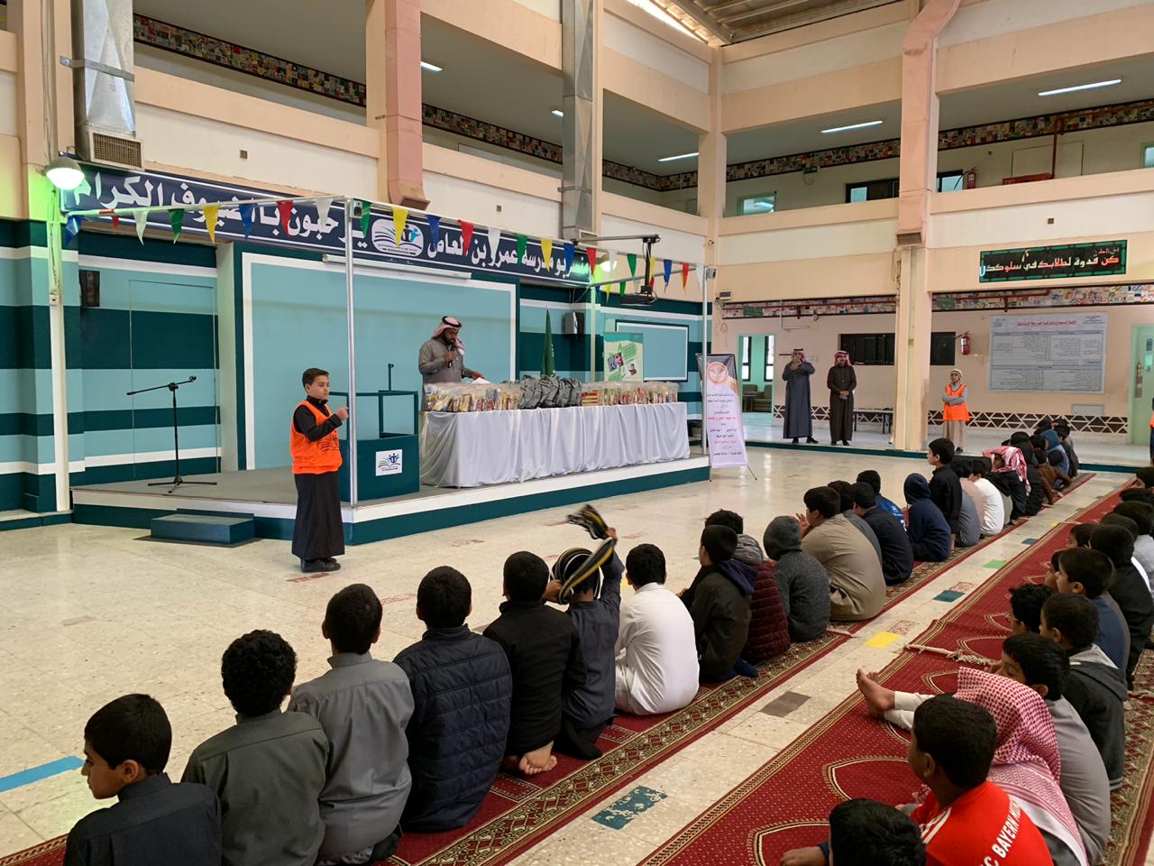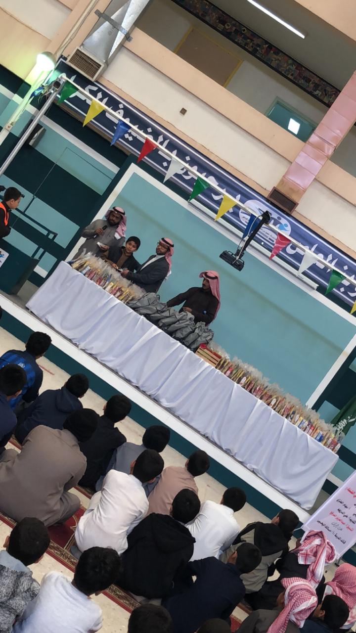 وفي ختام الورشة قدّم قائد المدرسة أ/ مالك اليحيى شكره لجميع من شارك في هذه الورشة , و تم توزيع وجبات إفطار صحية على الطلاب وأيضا بعض المكملات الشتوية (كسوة شتاء بسيطة ) وتوزيعات متنوعة نالت استحسان الطلاب . كمااتسمت الورشة بتفاعل الطلاب وحماسهم اثناء المناقشة والحوار .