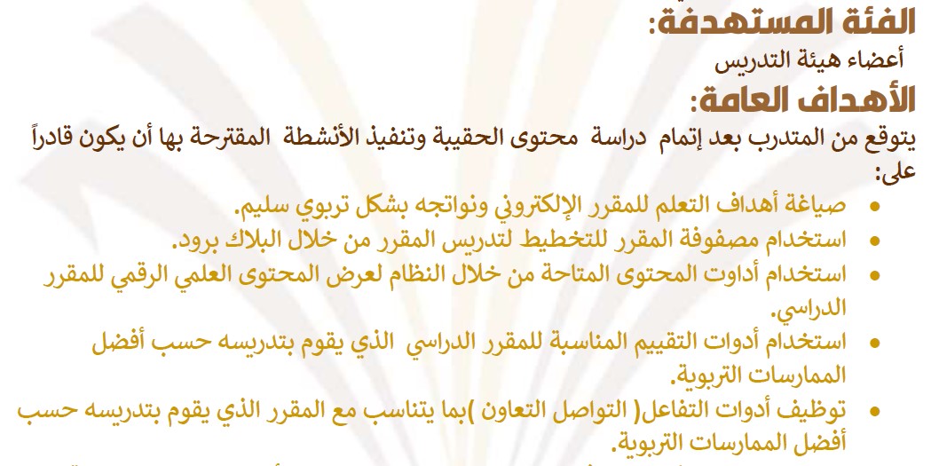 تحت رعاية سعادة عميد تقنية المعلومات الدكتور خالد النويصر، وسعادة عميد الكلية الدكتور ماجد الشريدة بدأت كلية التربية بإقامة أولى دورات برامج التعليم الإلكتروني التابعة لعمادة تقنية المعلومات والتعليم عن بعد بالجامعة، وذلك باعتبار كلية التربية مركزاً للتدريب للكليات بوادي الدواسر والسليل.ويتضمن البرنامج ثلاث دورات وهي - أساسيات البلاك بورد - ومنصة شمس - والسبورة الذكية - ويقوم بالتدريب مدربات معتمدات من العمادة، ويستمر البرنامج لمدة ستة أيام، وقد شمل التدريب عضوات من كليات: التربية، والعلوم الطبية والتطبيقية، والعلوم والآداب بوادي الدواسر بمختلف الأقسام.وكانت أولى الدورات المقدمة دورة أساسيات البلاك بورد والتي ستستمر لمدة أربعة أيام، قدمتها الدكتورة سحر عزالدين مشرفة وحدة التعليم الإلكتروني بالكلية، وقد أشادت المتدربات في اليوم الأول للدورة بمستوى التنظيم، وتوفير الدعم الفني اللازم للتدريب بشكل متميز؛ حيث تم إنشاء مقررات تدريبية علي البلاك بورد لجميع المتدربات بما يتيح لهن التفاعل وممارسة الأنشطة التدريبية بالشكل الأمثل .
