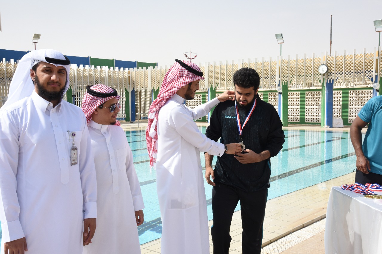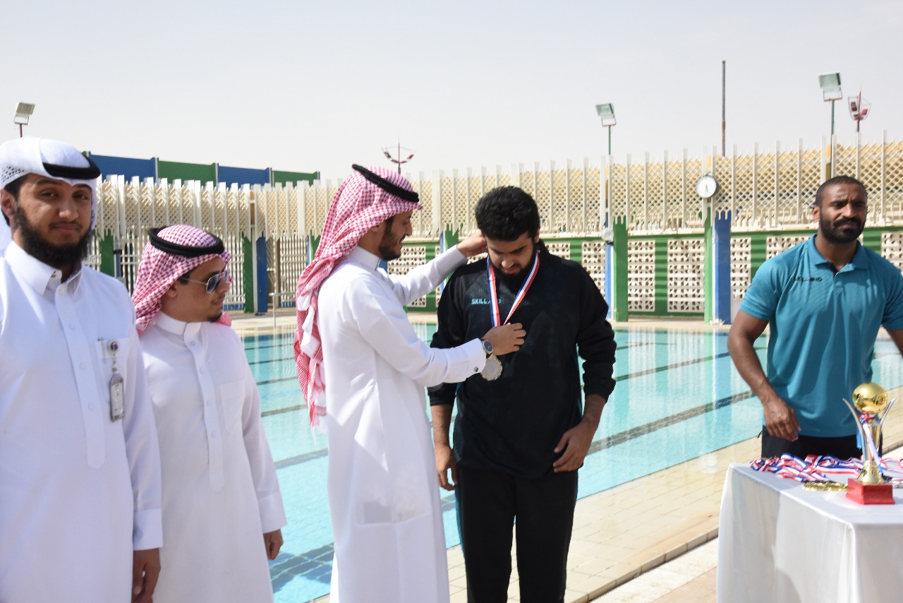 فقد حقق الطالب فهد ضافي الدوسري من كلية التربية بوادي الدواسر المركز الثاني في السباحة مستوى 50 صدر ، كما حقق أيضاً المركز الرابع مستوى 50 حرة بزمن ( 40.57 ) ث .