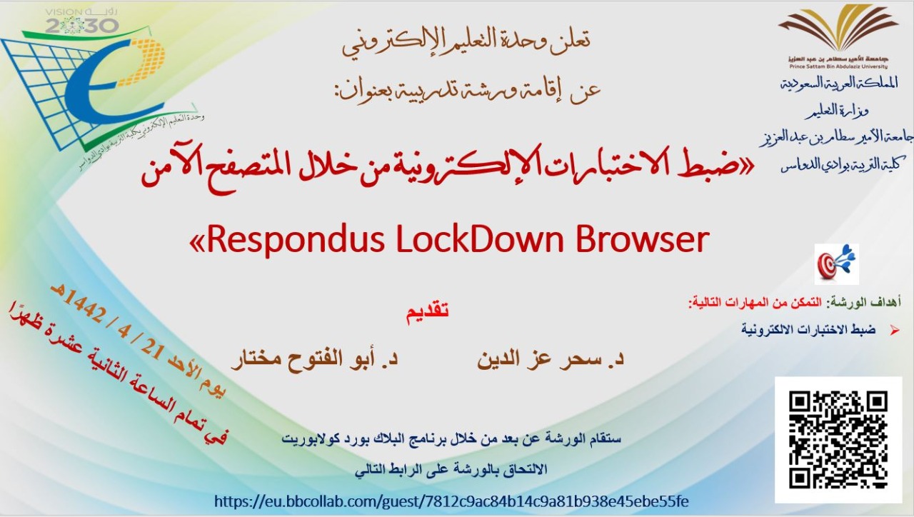 ويأتي ذلك ضمن إطار تنفيذ توجيهات عميد الكلية الدكتور ماجد الشريدة بضرورة إقامة دورات تدريبية مستمرة لأعضاء هيئة التدريس فيما يتعلق بالتدريب على الميزات المتقدمة في بناء الاختبارات والاستعداد لها وقام بتقديم الدورات كل من الدكتور أبو الفتوح مختار والدكتورة سحر عزالدين، وشمل البرنامج التدريبي في اليوم الأول بناء الاختبارات باستخدام كل من مجموعات الأسئلة والكتل العشوائية وكذلك بناء مخازن الأسئلة وتنظيم إعدادات الاختبار، واليوم الثاني شمل التدريب على إدارة مركز التقديرات وتحميل وتنزيل الدرجات، والتعامل مع أعمدة وصفوف مركز التقديرات، وفي اليوم الثالث تم التدريب على توظيف المتصفح الآمن LockDown Browser وقد أقيم اللقاء التدريبي عبر القاعة الافتراضية ببرنامج البلاك بورد كلابوريت وفي ختام التدريب تم الإجابة عن جميع أسئلة واستفسارات الأعضاء فيما يتعلق بالاختبارات . ونال البرنامج التدريبي استحسان أعضاء هيئة التدريس بالكلية حيث شمل اللقاء عدة مناقشات ثرية حول مميزات استخدام مخازن الأسئلة وتنظيمها بشكل يتوافق مع قياس مخرجات التعلم للمقررات.