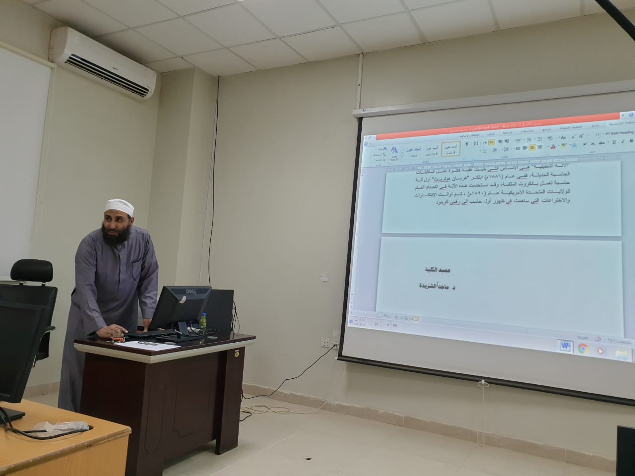 ومن جانبه صرح عميد الكلية الدكتور ماجد بن علي الشريدة بأن هذه الدورات تأتي ضمن خطة الجامعة لرفع الكفايات الإلكترونية لدى منسوبيها ، وفي ختام تصريحه شكر الشريدة الجامعة على دعمها لإقامة مثل هذه الدورات ممثلة في عمادة تقنية المعلومات والتعليم عن بعد، كما ثنا بالشكر على السادة الموظفين الذين شاركوا في هذه الدورات.