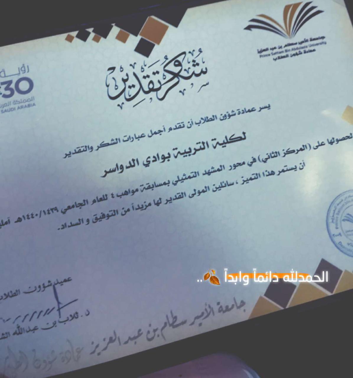 تنوعت المراكز المتقدمة التي حصلت علها التربية بوادي الدواسر خلال الحفل الختامي للأنشطة الطلابية الذي أقيم يوم الأحد 2/8/1440 هـ الموافق 7/ 4/2019م تحت رعاية معالي مدير جامعة الأمير سطام بن عبدالعزيز الأستاذ الدكتور/ عبدالعزيز بن عبدالله الحامد .