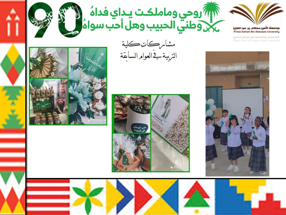 وعٌرض بعد ذلك بعض من مشاركات الكلية بالاحتفال باليوم الوطني للأعوام السابقة وتلاها فيلم وثائقي لأهم إنجازات المملكة خلال هذه المسيرة العظيمة للقطاعات كافة وأهمها مشروع "نيوم " بما يتماشى ورؤية 2030 .