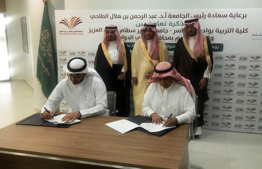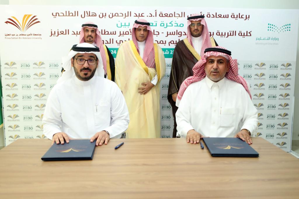 وقد جرى توقيع المذكرة بين عميد الكلية الدكتور ياسر بن مبارك الدوسري، ومُدير التعليم بالمحافظة الأستاذ عايض بن مجلي آل مجلي، بحضور سعادة رئيس جامعة الأمير سطام بن عبدالعزيز الأستاذ الدكتور عبدالرحمن بن هلال الطلحي وحضور محافظ وادي الدواسر الاستاذ فهد المسعود، ومحافظ السليل الأستاذ ثامر الشتوي.