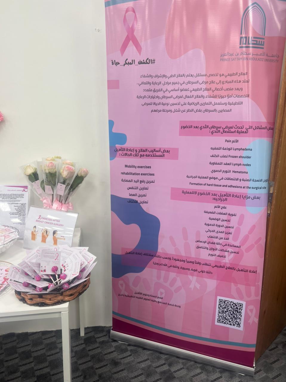 وخلال الفعالية تم توزيع نشرات ومطويات توعوية لزيادة الوعي العام بمرض سرطان الثدي