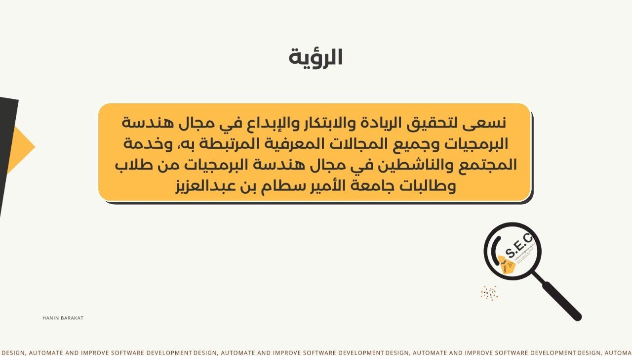 وتابع الدكتور القحطاني حديثه وقال إن نادي هندسة البرمجيات بالكلية يسعى في هذا العام الجامعي إلى لغرس الحب والشغف بالعمل الطلابي الذي سيمكن الطالب والطالبة من تطوير ذاتهم وتعلم القيم والمفاهيم الجديدة للحياة وتعزيز ولاءهم لمكان انتمائهم جامعة الأمير سطام وكلية هندسة وعلوم الحاسب ودعم التحصيل العلمي بالإضافة إلى تعزيز روح التعاون ومفهوم العمل الجماعي والإنساني بين الطلاب والمساهمة في تطوير الخدمات الطلابية.