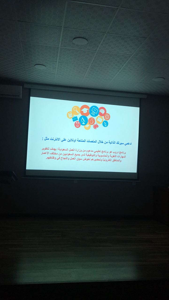 تمت من خلالها مناقشة عدة محاور في السيرة الذاتية وتوضيح أهم النصائح والأخطاء الشائعة وطريقة إعداد السيرة الذاتية بشكل الصحيح، و الخطوات الصحيحة في إرسال السيرة عبر البريد الإلكتروني، كذلك تمت مناقشة أهمية الحصول على الخبرات والدورات والاستزادة من المهارات والاستفادة من المنصات التى تتيح التعلم الذاتي وتطوير المهارات بشكل عام .