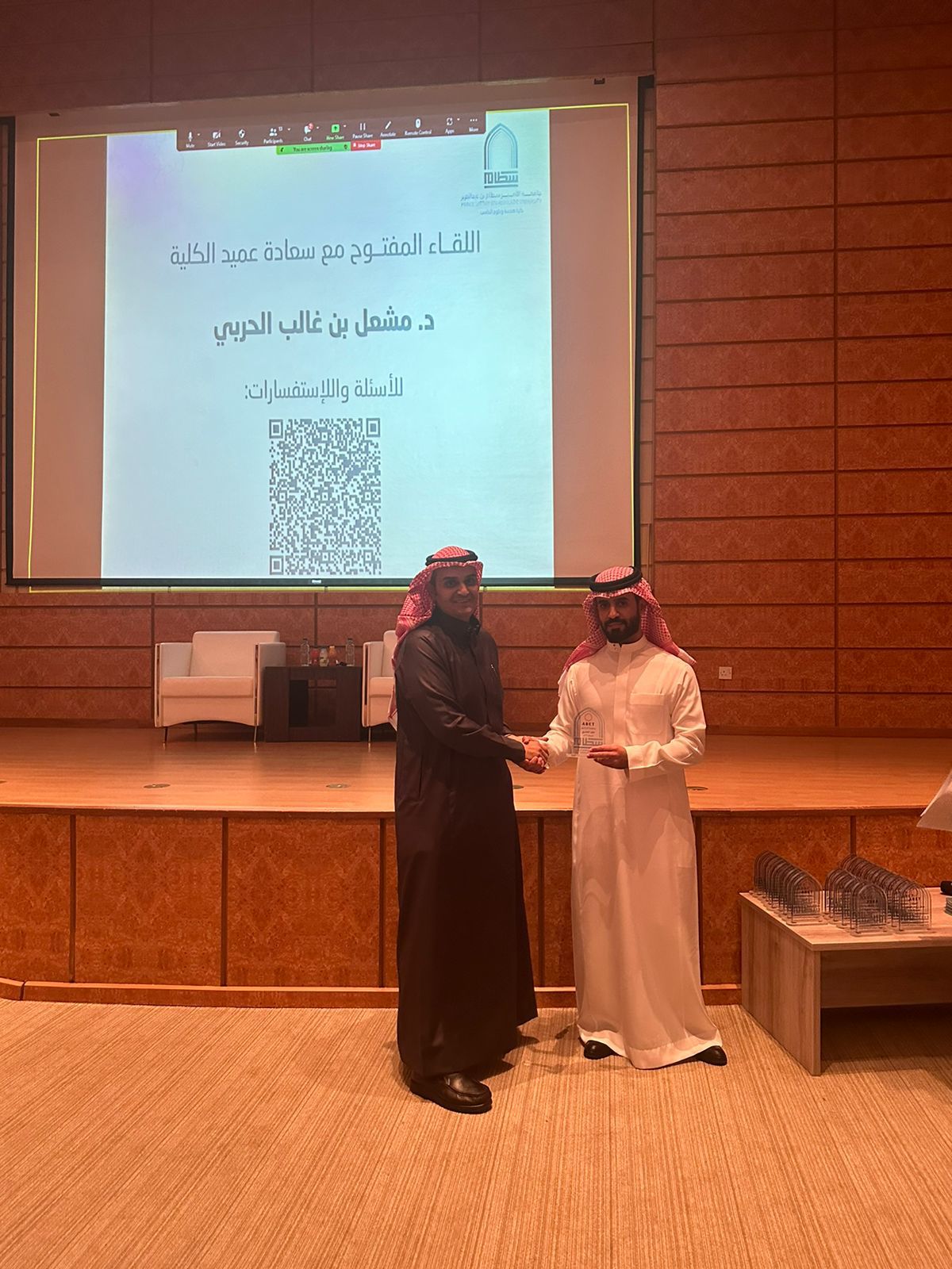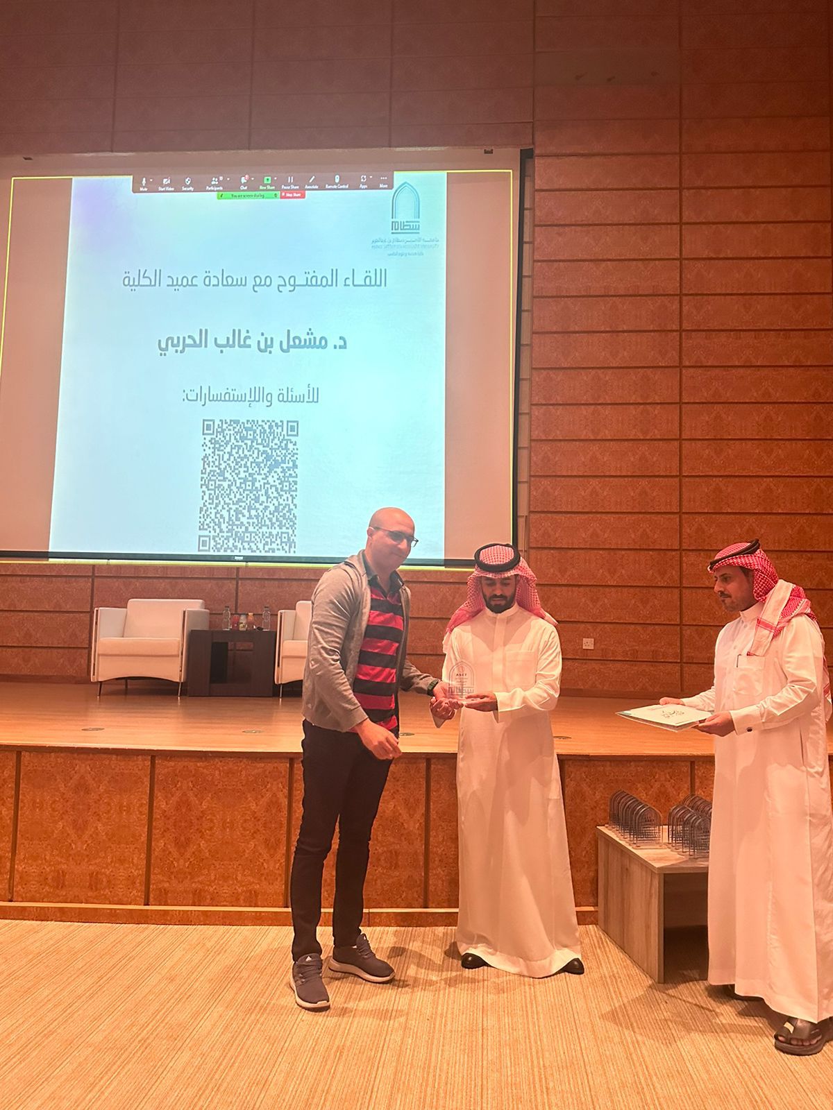 وفي الختام قام وكيل الكلية للشؤؤن التعليمة والاكاديمية ورئيس وحدة الخريجين بتوزيع الدروع وتكريم خريجي الكلية المشاركين في الجلسات الحوارية.