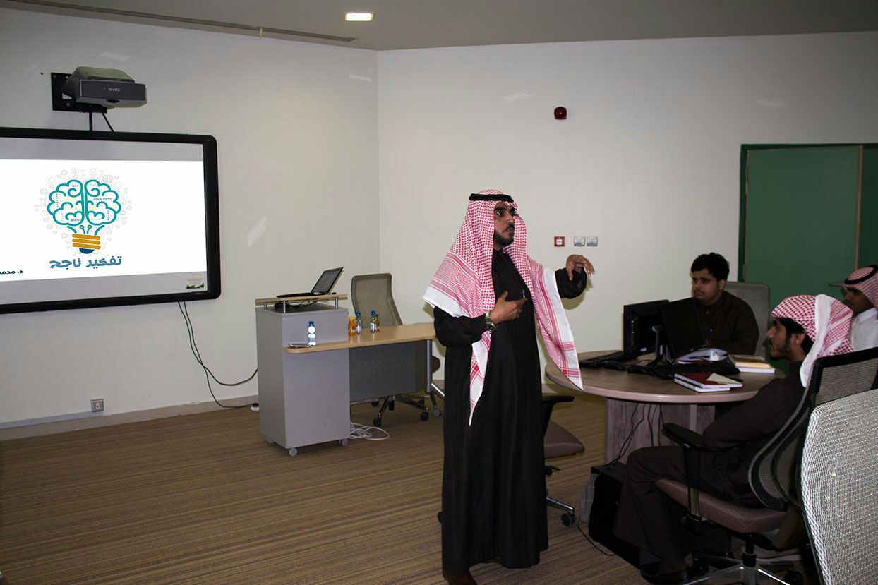 أقامت كلية هندسة وعلوم الحاسب بالتعاون مع وحدة التوعية الفكرية يوم الاثنين ٣٠ / ٥ / ١٤٣٨ هـ حلقة نقاش بعنوان "التفكير الناجح" للدكتورمحمد المهيزع بنادي الحاسب بالكلية وبحضور عدداً كبير من طلاب الكلية من جميع أقسام الكلية. استهل الدكتور المهيزع الأسباب والعوامل المساعدة على التفكير الناجح و طرق الإستفادة منها أثناء الدراسة الجامعية. كما استطرد الدكتور في حديثه عن بعض المعوقات في طرق التفكير من الإنشغال و الأنسياق خلف برامج التواصل مثل السناب شات و الانستقرام و اليوتيوب و غيرها من برامج التواصل الاجتماعي .