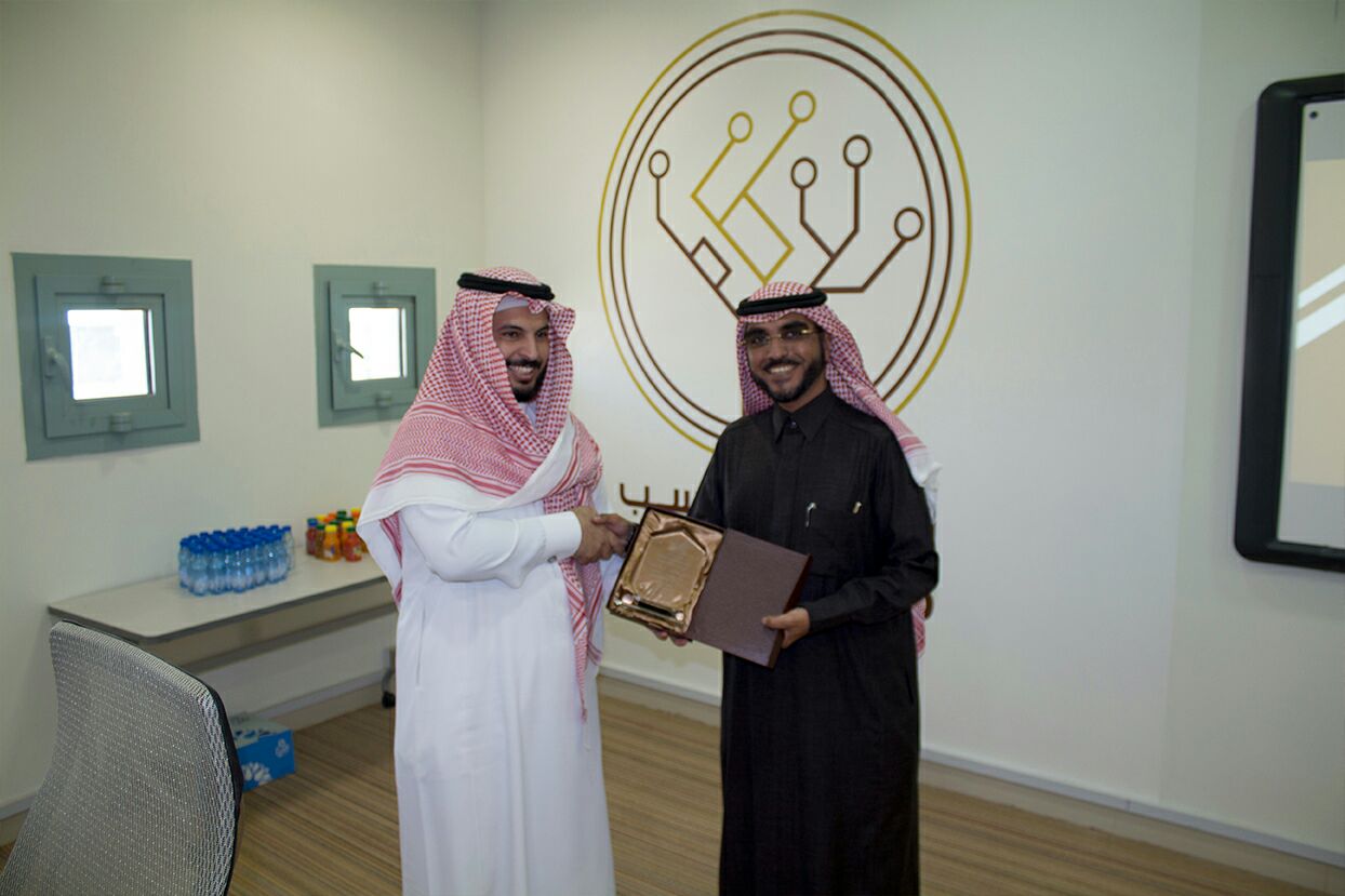 في نهاية اللقاء، قدمت وحدة الأنشطة الطلابية بكلية هندسة وعلوم الحاسب درع شكر و تقدير لسعادة الدكتور محمد المهيزع .