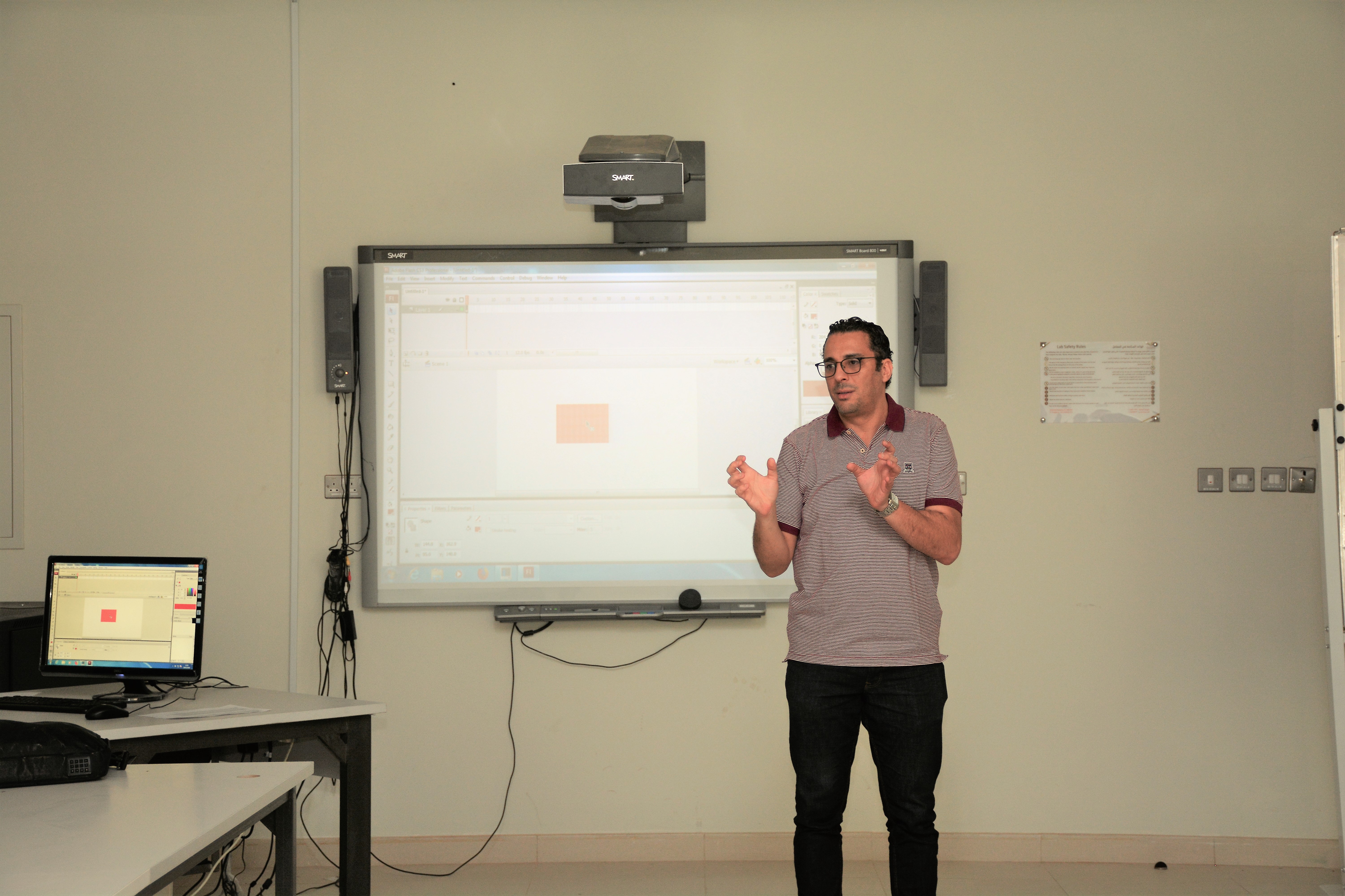 اقامت وحدة الأنشطة الطلابية بكلية هندسة وعلوم الحاسب يوم الاثنين الموافق 1439/06/03هـ ورشة عمل بعنوان "برمجة الصور المتحركة" والتي ألقاها سعادة الدكتور بلحسن العكروت عضو هيئة التدريس بقسم علوم الحاسب بالكلية.