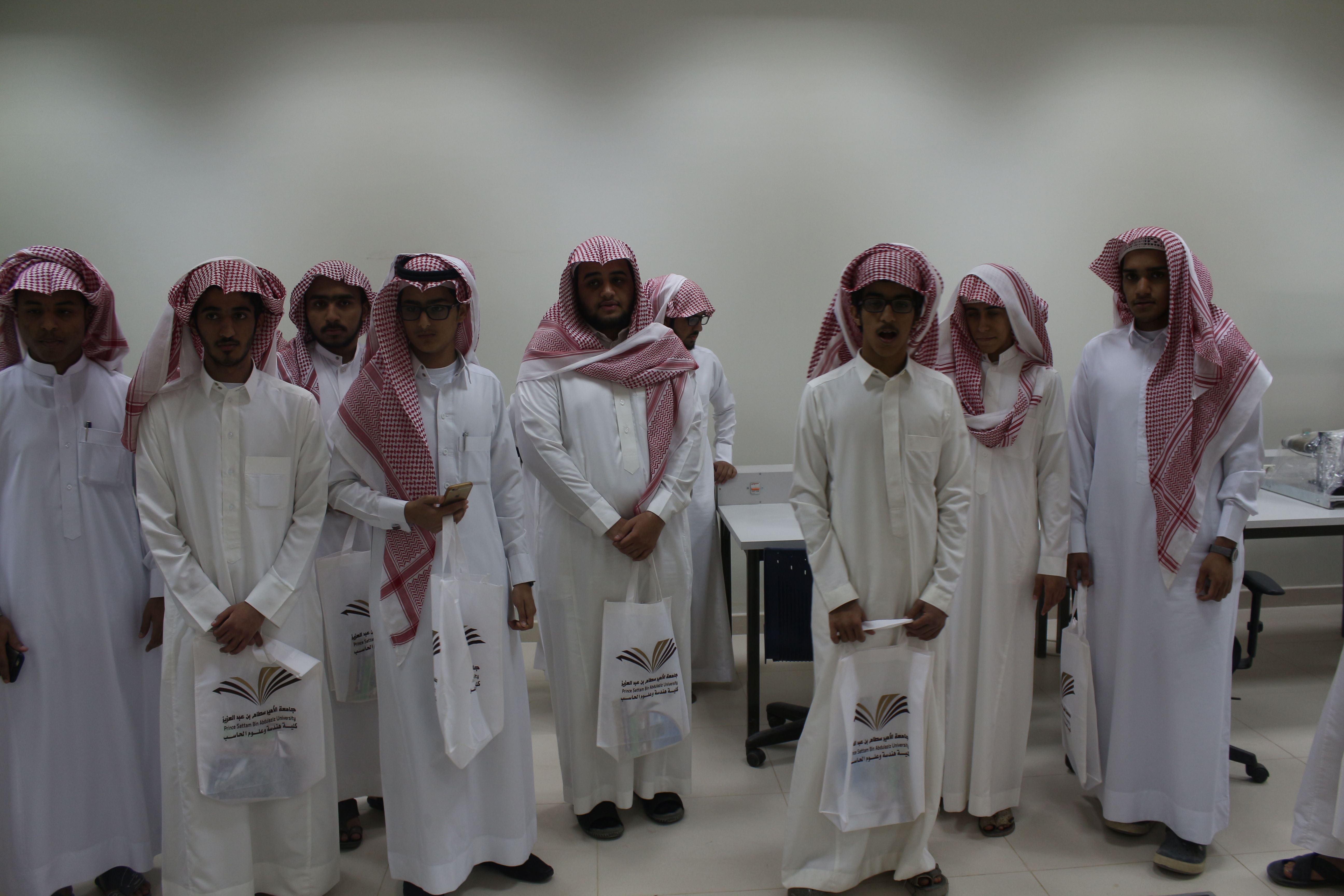 كان في استقبال الطلاب سعادة وكيل الكلية الدكتورعبدالعزيز الداعج والاستاذ سعود العييد وتم توزيع مطبوعات تعريفية عن الكلية وأقسامها ومن ثم عمل جولة على جميع المعامل والمكتبة وجميع مرافق الكلية.