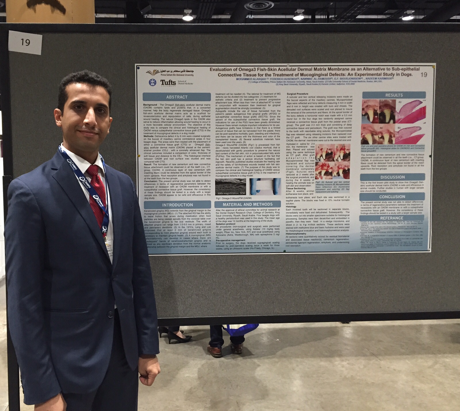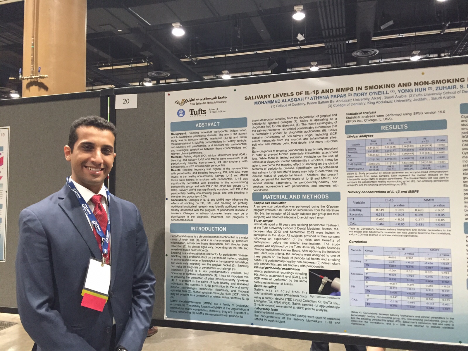 وقد قدم الدكتور ورقتي بحث الأولى بعنوان دور المؤشرات الحيوية في اللعاب في تشخيص أمراض اللثة لدى المدخنين، وكانت الورقة الثانية بعنوان تأثير أنسجة الاوميقا 3 على شفاء الجروح اللثوية .