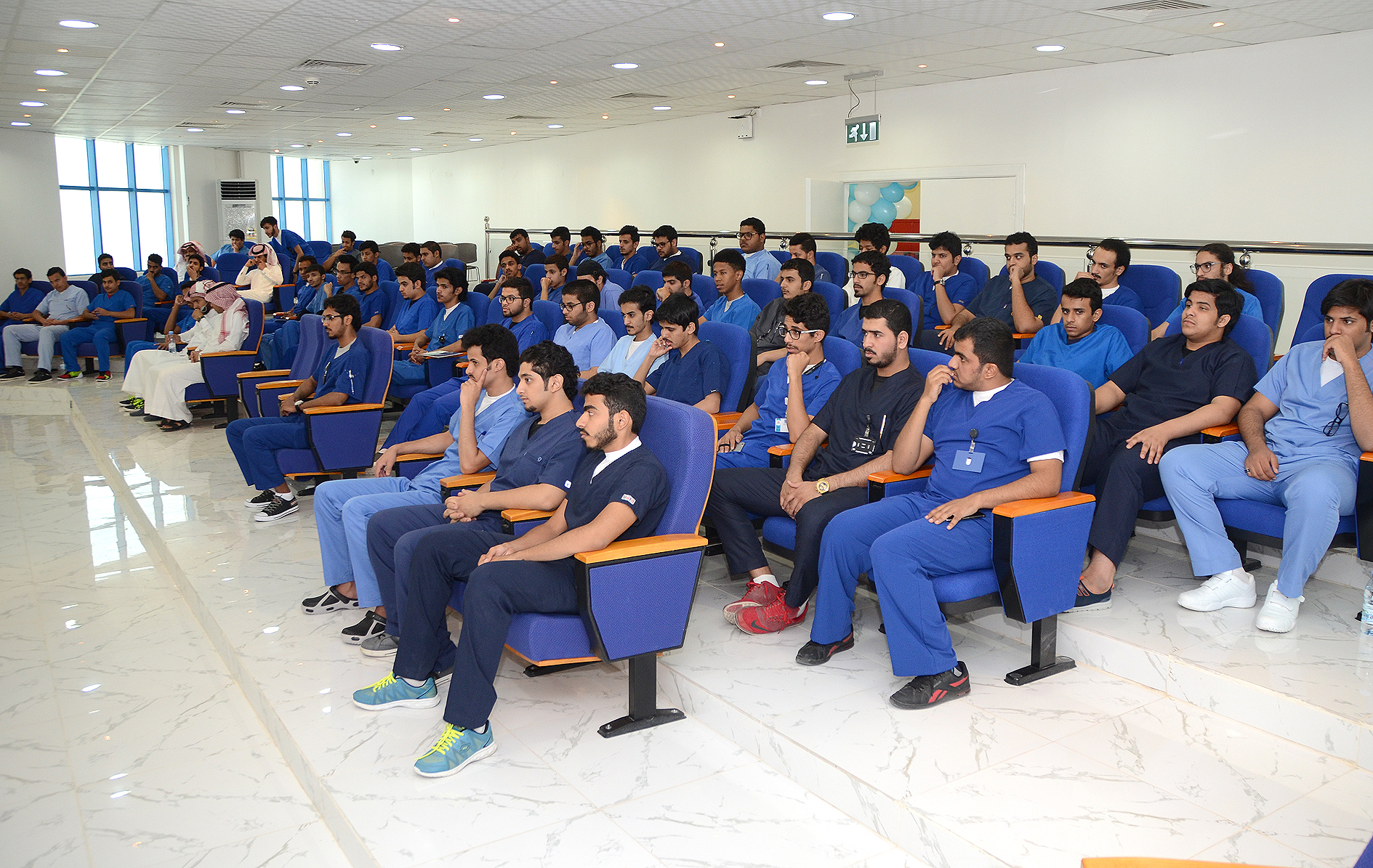 التقى عميد كلية طب الأسنان الدكتور محمد بن سالم المهيزع - بمبنى الكلية- الطلاب الجدد، وذلك بحضور وكيل الكلية وأعضاء هيئة التدريس؛ حيث ابتدأ اللقاء بآيات من الذكر الحكيم، ثم كلمة الدكتور المهيزع والتي شكر فيها الطلاب على حرصهم وحضورهم هذا اللقاء الأول بين العميد والطلاب، كما قدم شكره لطلاب المستويات الأخرى بالكلية لمشاركتهم وحضورهم هذا اللقاء، كما هنئهم بالعام الدراسي الجديد 1436هـ / 1437هـ وحثهم فيها على الجد والاجتهاد والمشاركة في الأنشطة الطلابية، متمنيًا لهم عامًا حافلاً بالتوفيق والنجاح، كما طالب من الجميع الاجتهاد، مشيرًا إلى أن الكلية بكافة إمكاناتها ومنسوبيها في خدمة الطالب، فقلوبنا مفتوحه لكم قبل أبوابنا ونرحب باستفساراتكم واقتراحاتكم وملاحظاتكم، متمنيًا من الطلاب الأمانة في الدراسة، واحترام جميع العاملين بالكلية والمحافظة على محتوياتها، والانضباط في الحضور والانصراف .