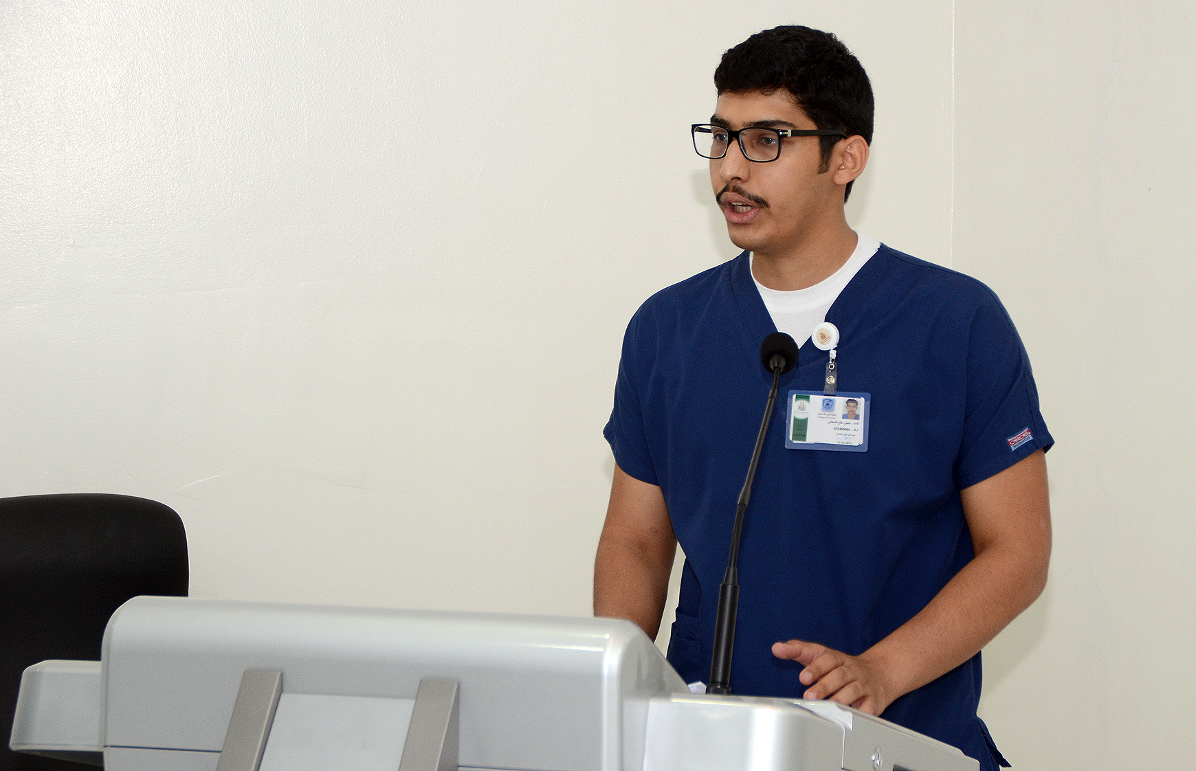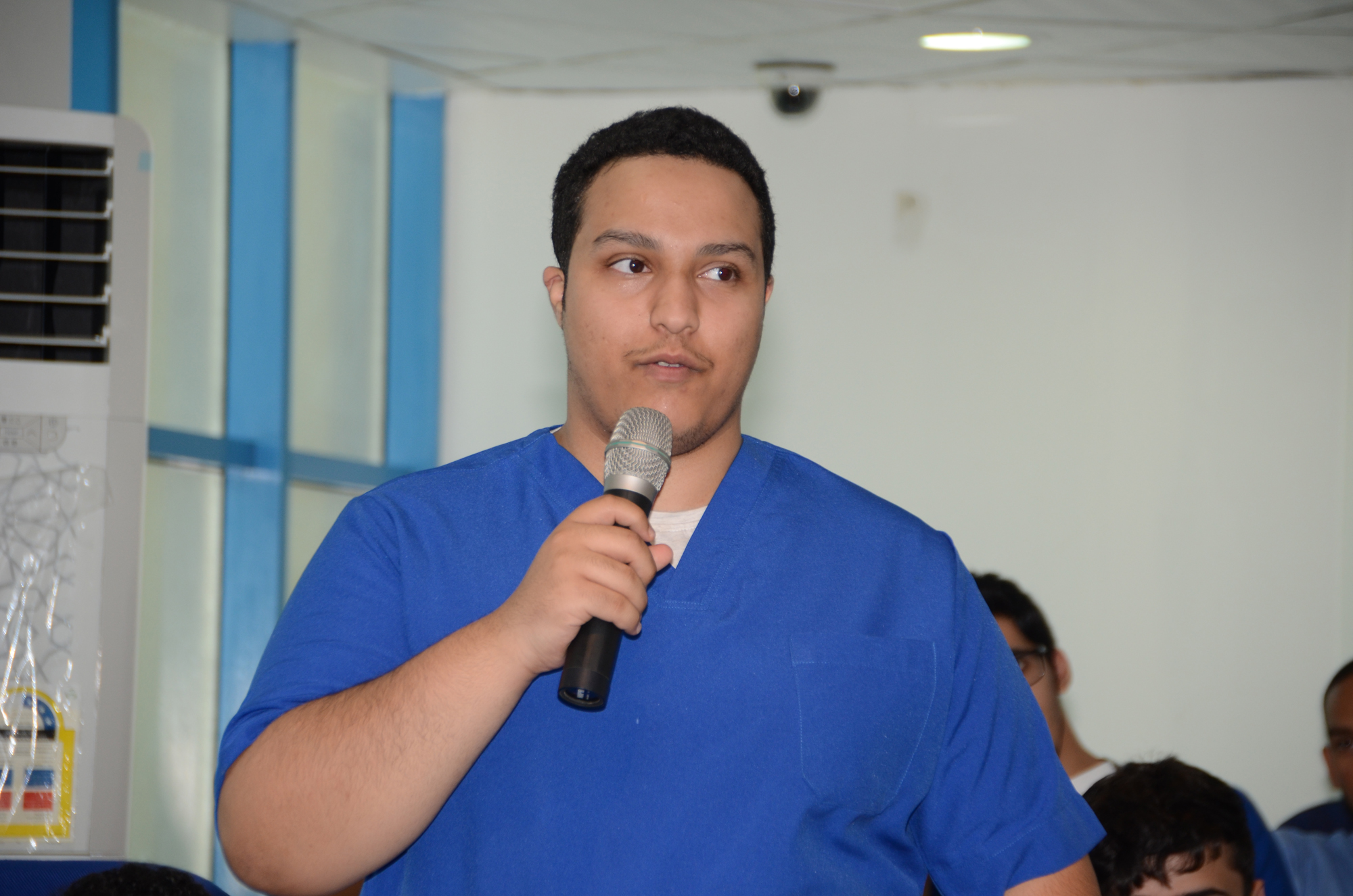 كما رحب الدكتور زيد الجعيدي بالطلاب الجدد قائلاً: يسعدني أن أراكم وجوهًا شابة تخدم هذا الوطن الغالي بمشيئة الله تعالى، وأوصيكم بالإخلاص والالتزام بوقت الحضور والانصراف وأيضًا احترام أعضاء هيئة التدريس، كما أحثكم بالحرص على ممتلكات الكلية فهي ممتلكاتكم، متمنيا التوفيق للجميع لنراكم أطباء المستقبل إن شاء الله.