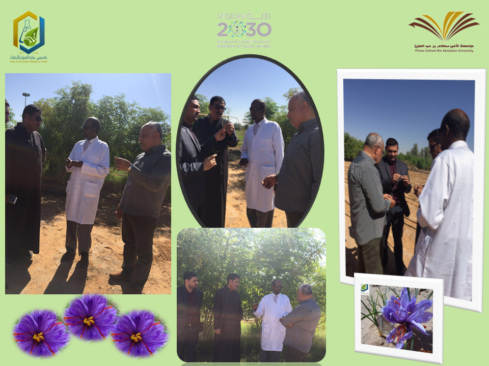 استقبل الدكتور برافيج علام "الأستاذ المساعد بكرسي سارة بنت راشد بن غنيم لاستزراع النباتات الطبية والعطرية غير التقليدية" الأستاذ عبدالكريم السلامة - رئيس مجلس الإدارة والمدير العام لشركة مشاتل البستان، وقد أطلعه الدكتور علام على أحدث ما توصل إليه الكرسي في مجال الإكثار المعملي والحقلي للزعفران وكذلك جميع متطلبات زراعة وإنتاج وحصاد وتجفيف الزعفران. كما أضاف المهندس/ السري محمد القرشي (مسؤول الإنتاج الحقلي) أن من طموحات الكرسي أن تصبح الشركات الوطنية بالمملكة هي أحد مصادر إمداد المستثمرين والمزارعين بكورمات الزعفران عالية الجودة واللازمة لزراعة الزعفران بالمملكة وخارجها، حيث إن هذا النبات لا ينتج بذورًا إلا تحت ظروف نادرة وخاصة جدًّا.