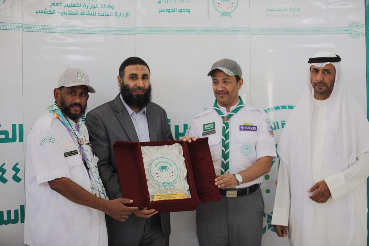 كرمت إدارة النشاط الكشفي بوزارة التعليم ، عميد كلية التربية بوادي الدواسر ، الدكتور ماجد بن علي الشريدة ، تقديراً للتعاون والمساهمة التي قدمتها الكلية لإنجاح الدراسة المتقدمة للشارة الخشبية ، التي نظمتها كشافة الوزارة واختتمت اعمالها مؤخراً في وادي الدواسر ، حيث قام مُدير إدارة النشاط الكشفي بوزارة التعليم ، مجدي محمد الصبيحي بتسليم درع تكريمي لعميد الكلية تسلمه نيابة عنه عضو هيئةالتدريس الدكتور ابوالفتوح مختار محمد ، بحضور رئيس قسم النشاط الطلابي بالإدارة شارع محمد آل وديان ، وقائد الدراسة محمد أحمدمدخلي .