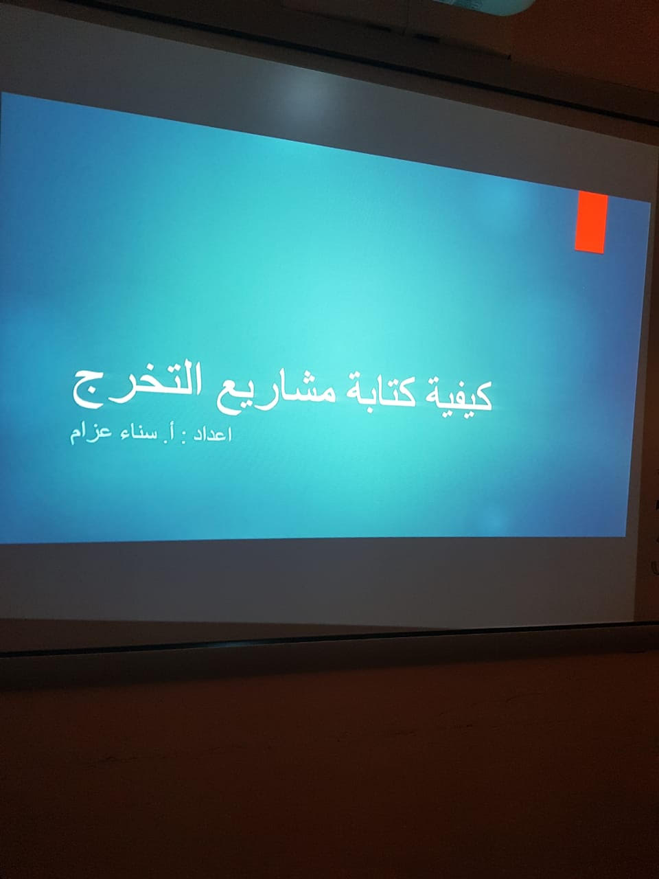 أقامت وحدة الخريجات بكلية المجتمع بالخرج متمثلة بلجنة مشاريع التخرج محاضرة بعنوان: " كيفية كتابة تقارير مشاريع التخرج" من تقديم الأستاذة / سناء أحمد عزام.