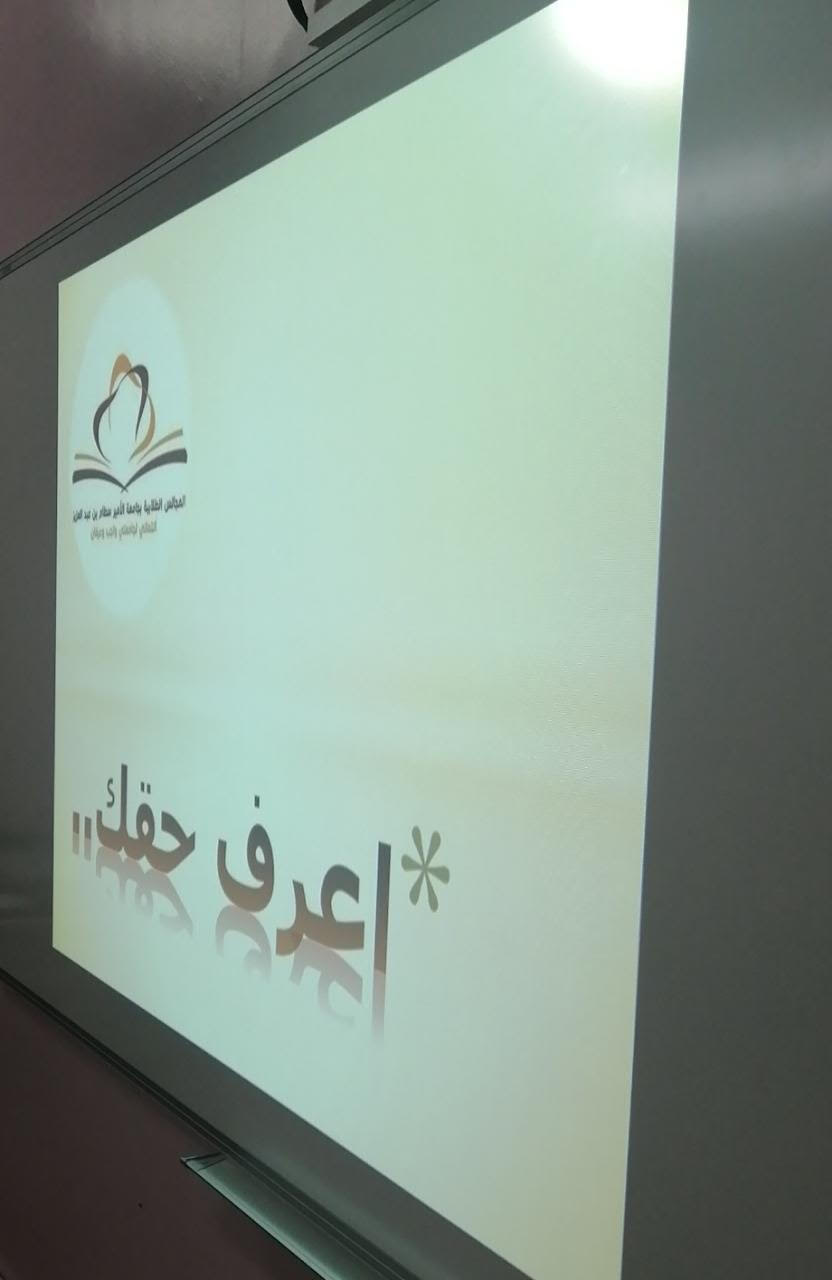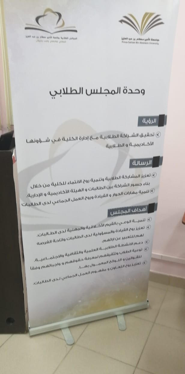 بلائحة الحقوق والواجبات التي تخص الطالبة الجامعية منها ما يختص بالجانب الأكاديمي ومنها ما يختص بالجانب الغير أكاديمي من قبل طالبات المجلس الطلابي بإشراف الأستاذة/ عهد العتيبي.