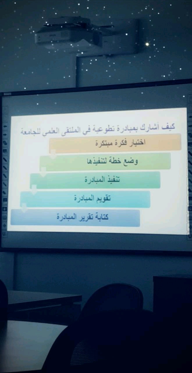 اليوم الاثنين الموافق : 22 / 5 /1440هـ وذلك في قاعة الورش التدريبية بالكلية، وبذلك تنتهي سلسلة البرامج التأهيلية والتي ابتدأت بسيناريو وحوار الملتقى العلمي الثالث في 24 / 3 وانتهت اليوم بهذه الورشة سائلين المولى لطالباتنا المشاركات التوفيق والتفوق .