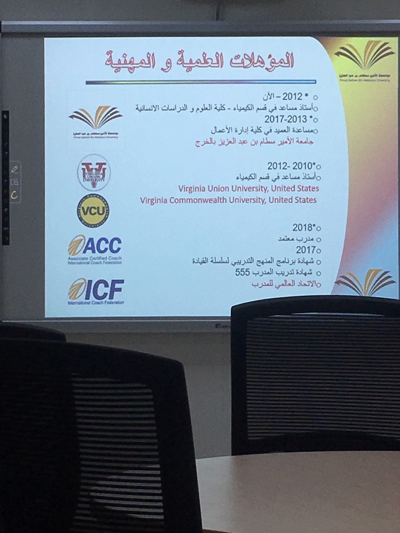 أقامت كلية العلوم والدراسات الإنسانية بالخرج أقسام الطالبات يوم الثلاثاء الموافق 14/2/1440هـ دورةً تدريبة استهدفت الطاقم الإداري بالكلية بتنسيق وإشراف مشرفة تطوير مهارات أعضاء هيئة التدريس والإداريين الأستاذة أروى الدوسري وقد كانت من تقديم الدكتورة / فرح رضوان (أستاذ مساعد في قسم الكيمياء ومدرب معتمد من الاتحاد العالمي للتدريب) وذلك في قاعة التدريب.