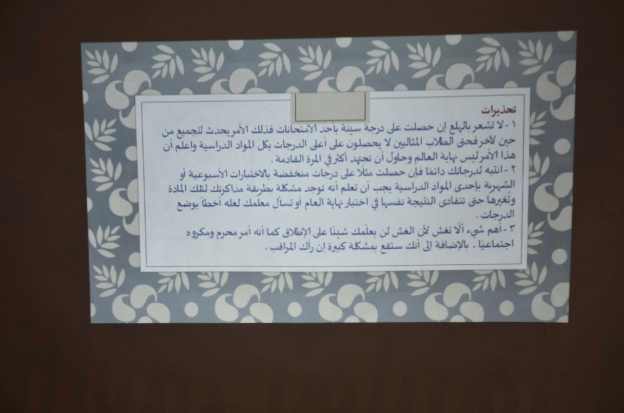 قامت وحدة العمل الطلابي ممثلة بالمجالس الطلابية لقسم الرياضيات بكليات الأفلاج (قسم الطالبات) يوم الأحد1441/3/27هـ الساعة التاسعة والنصف في بهو مبنى الأقسام العلمية بتنظيم برنامج بعنوان (كيف تكونين طالبة مثالية)، يهدف البرنامج إلى تعريف الطالبة بكل ما تحتاج إليه لتصبح مثالية، من صفاتٍ يجب أن تتحلى بها، وطرق ونصائح ينبغي الحرص عليها، وتوضيح الممارسات الواجب تجنبها والحذر منها، وقد لاقى البرنامج حضوراً وتفاعلاً من قبل الطالبات.