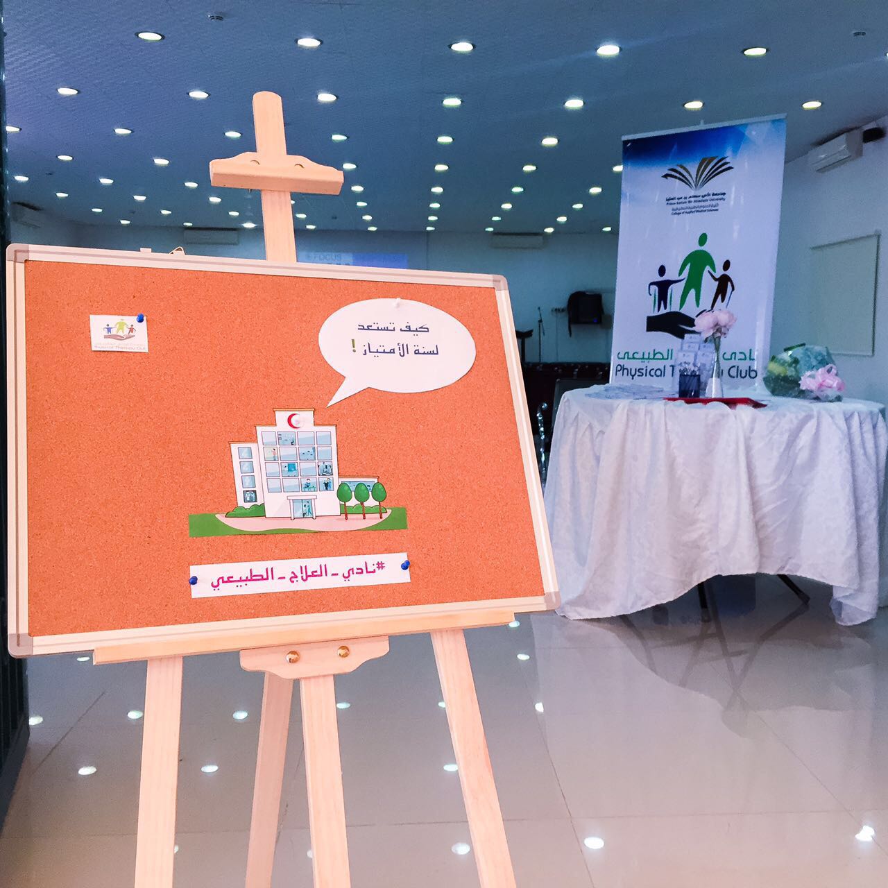 قام نادي العلاج الطبيعي باستضافة هنوف المرزوق أخصائية من مدينة الملك فهد الطبية لإلقاء محاضرة بعنوان (كيف تستعد لسنة الامتياز) وذلك يوم الخميس 6/3/ 1438هـ وتأتي هذه المحاضرة بغرض التعريف بسنة الامتياز واكساب الطالبات المهارات والخبرات الخاصة بها , واشتملت المحاضرة على العديد من المحاور وهي: ( ماهي سنة الامتياز ومدتها , كيفية اختيار المستشفى الأنسب للتدريب واكتساب المهارات , كيفية اجتياز المقابلة الشخصية والسمات الواجب توافرها في الفرد , أهم الأنظمة واللوائح في المستشفيات المختلفة, كيف يتم تقييم طالبة الامتياز , كيفية تنمية وتطوير الذات, كيفية اكتساب الثقة بالنفس والمهارات الأخرى, كيفية مواجهة العقبات )