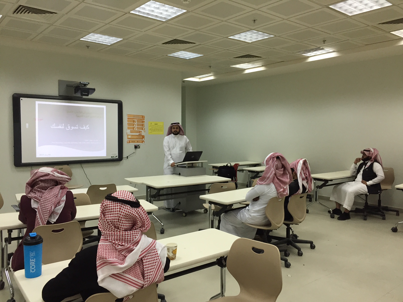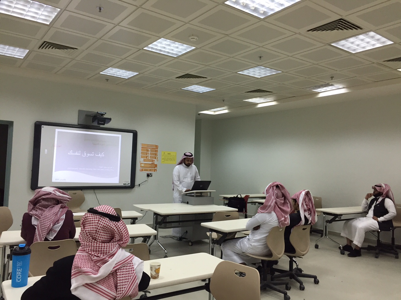 استمراراً لجهود كلية إدارة الأعمال في تأهيل طلابها للمنافسة في سوق العمل وإثبات جدارتهم، أقامت وحدة الخريجين متمثلة في لجنة التدريب والتأهيل للعام الدراسي 1438/1439هـ دورة تدريبية في مجال التأهيل الوظيفي لطلاب كلية ادارة الأعمال والتي كانت بعنوان (كيف تسوق لنفسك)، والتي قدمها الدكتور: أحمد بن سهيل عجينة الأستاذ المساعد ورئيس قسم التسويق، ورئيس وحدة الجودة والتطوير بكلية إدارة الأعمال. وقد تناولت هذه الدورة عدة محاور منها التعريف العام بعلم تسويق الذات وكيف يمكن للفرد أن يسعى إلى المنافسة في سوق العمل من خلال التأهيل الأولي في مرحلة الدراسة وقبل مرحلة التخرج بالتدريب وأخذ الدورات التي تنمي مهاراته. كما تضمنت الدورة بعض من الاستراتيجيات في تحليل الذات من خلال تحديد نقاط القوة والضعف والفرص والتحديات المتاحة في سوق العمل. ودعى الدكتور/ أحمد بن سهيل عجينة الحضور إلى الإستفادة من أنشطة وبرامج وحدة الخريجين التي تساهم لمساعدتهم في الحصول على فرص وظيفية وتنمية مهاراتهم وقدراتهم.