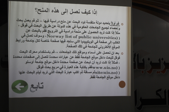 قامت وحدة الخريجات (التأهيل للدراسات العليا) بكليات الأفلاج (قسم الطالبات) يوم الأثنين 1441/3/14هـ الساعة العاشرة صباحاً في المسرح بتنظيم دورة بعنوان (كيفية التقديم لمنح الدراسات العليا) قدمتها أ. فكرات المثقال، وضحت من خلالها شروط برنامج خادم الحرمين الشريفين للابتعاث للدراسات العليا، والذي يهدف إلى إعداد الكفاءات المتخصصة والتوزيع السليم للموارد البشرية، وتحقيق التنمية المتوازنة من خلال تلبية احتياجات المناطق الجغرافية من الكوادر البشرية المؤهلة، ثم ذكرت كيفية الدخول على صفحة البرنامج بالخطوات من خلال الرابط على مسار "وظيفتك وبعثتك" واختتمت الدورة بكلمات تشجيعية للطالبات الخريجات والإجابة على استفساراتهن.