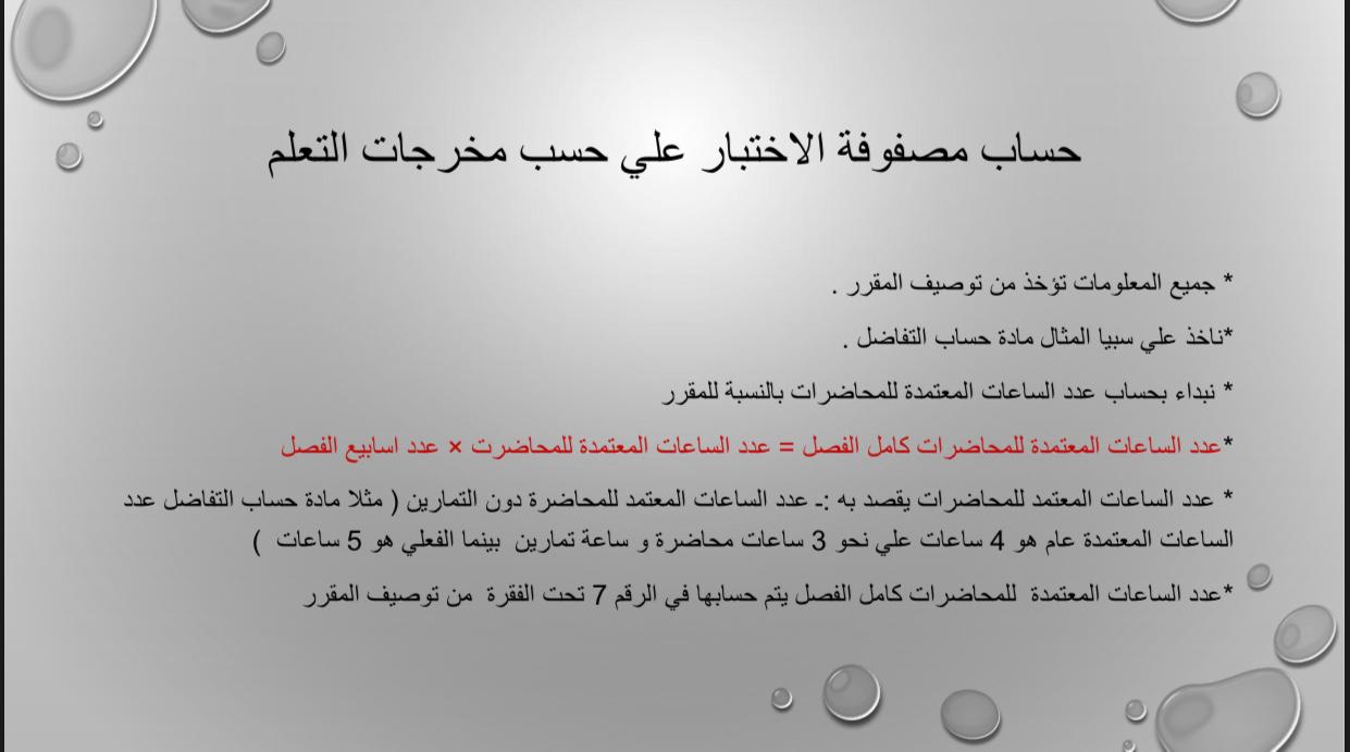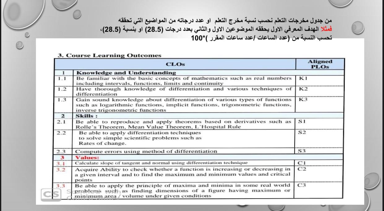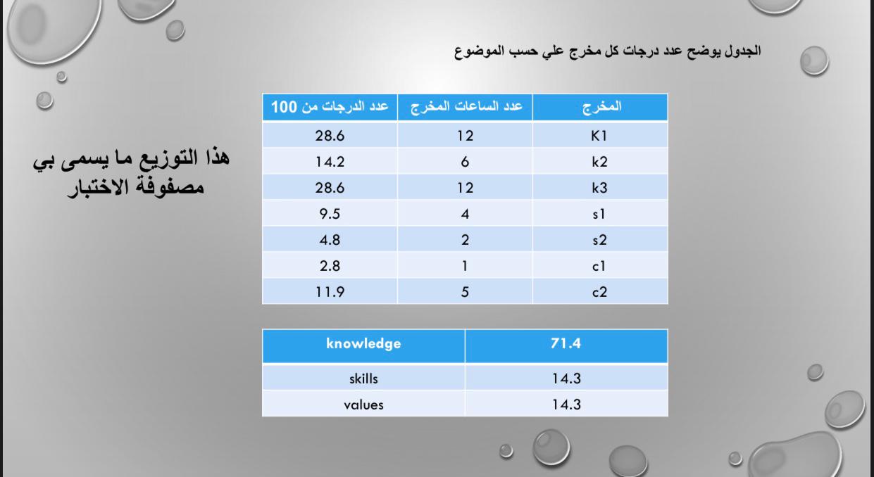 اختتمت الدورة باستقبال أسئلة الحضور والإجابة عنها ثم تم تزويد أعضاء هيئة التدريس بملف يبين كيفية حساب مصفوفة الاختبار ومخرجات التعلم