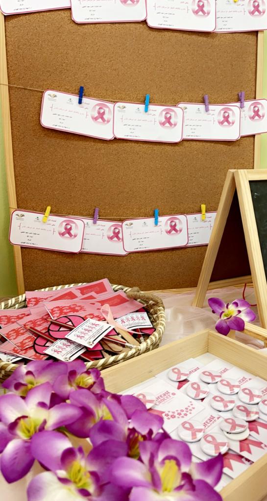 نظمت وحدة الأنشطة الثقافية والاجتماعية بعمادة السنة التحضيرية- قسم الطالبات،ركن توعوي تثقيفي بعنوان: (لا تصيرين الثامنة) وذلك يوم الأربعاء الموافق 1443/3/14هـ ، بحضور العديد من الطالبات ومنسوبات العمادة. اشتملت هذه الحملة على ركن توعوي تضمن لوحات للتعريف بمرض سرطان الثدي وأعراضه وكيفية تشخيصه وآلية الفحص الذاتي للثدي، وأنواع الفحوصات للكشف عن المرض، كما تضمن بروشورات إرشادية ما قبل إجراء فحص الماموجرام وجهازي الرنين الغناطيسي والتصوير بالموجات الفوق صوتية. كما تم توزيع بروشوراتٍ ومطوياتٍ على الحضور تحتوي على معلوماتٍ عن كيفية الوقاية من مرض سرطان الثدي والتي على إثرها لاقت إعجاب واستحسان الحضور.
