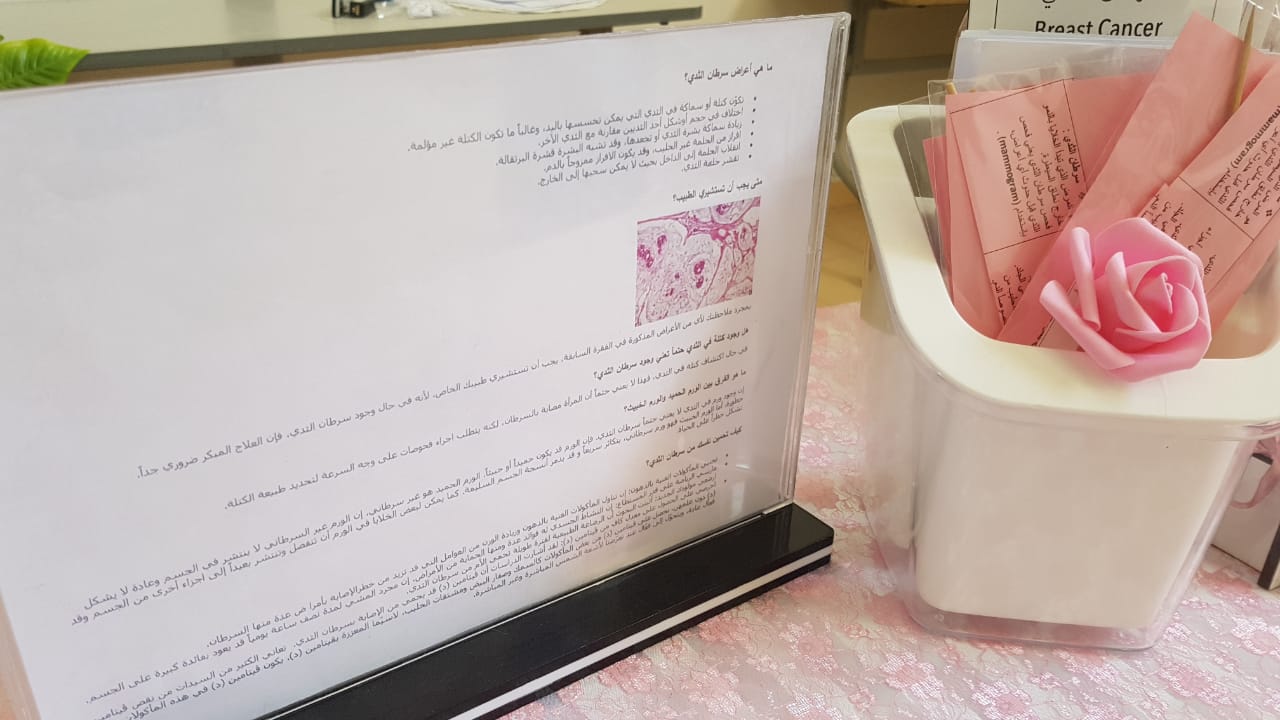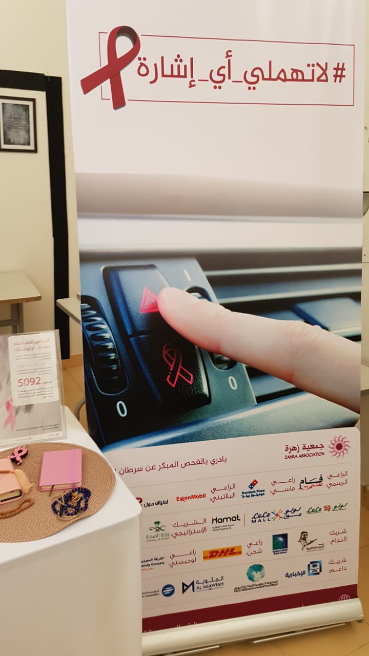 نظمت وحدة العمل الطلابي بعمادة السنة التحضيرية وبالتعاون مع جمعية زهرة لسرطان الثدي و مجمع عيادات طبيبك يوم الأربعاء الموافق 1440/2/1هـ ندوة للتوعية عن سرطان الثدي بعنوان "لا تهملي أي إشارة" بحضور العديد من الطالبات ومنسوبات العمادة. وتضمنت فعاليات الندوة قيام الدكتورة وفاء النجار من مجمع عيادات طبيبك بعرض توضيحي شمل تعريفاً عاماً بمرض سرطان الثدي وأعراض المرض وكيفية تشخيصه وآلية الفحص الذاتي للثدي وأنواع جراحات استئصال أورامه، تلاه تقديم عرض آخر باللغة الانجليزية بواسطة مديرة نادي اللغة الانجليزية ثم عرضت جمعية زهرة أهداف الجمعية و مبيعاتها الخيرية. كما تضمنت الحملة التوعوية توزيع بروشورات ومطويات من جمعية زهرة و مجمع عيادات طبيبك والأندية الطلابية في عمادة السنة التحضيرية على الحضور تحتوي على معلومات عن المرض وتعريفه وأعراضه وطرق تشخيصه وعلاجه وأهم النصائح الطبية التي ينصح باتباعها لتفادي الإصابة بالمرض.