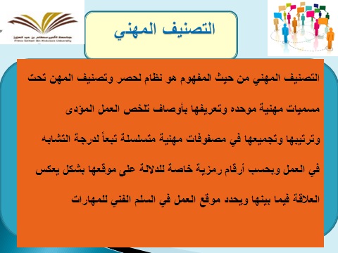 وهدفت الدورة الى إرشاد الطالبات الى معرفة التصنيف المهني للتخصصات المختلفة بالكلية والتوصيف المهني لها.