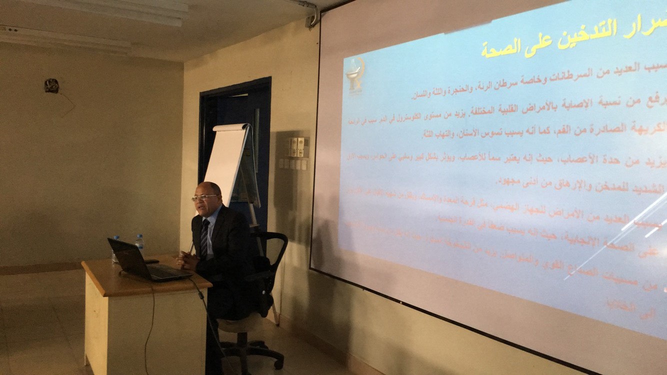 background:white;direction:rtl;unicode-bidi:embed">إيماناً من كلية الصيدلة بأهمية دورها الرائد في خدمة المجتمع وأهمية المشاركة المجتمعية نظمت الكلية برعاية سعادة عميد كلية الصيدلة الدكتور فهد بن ابراهيم الصيخان وبإشراف لجنة خدمة المجتمع برئاسة الدكتور عبدالله بن علي الفيفي برنامج توعوي عن خطورة التدخين على صحة الإنسان بثانوية الشيخ ابن عثيمين وذلك يوم الثلاثاء 17/7/1439 هـ الموافق 3/3/2018. قام الدكتور عبدالله الفيفي رئيس اللجنة والدكتور جمال جبر عضو اللجنة وعضو المجلس الطلابي الطالب زياد الدعجاني بزيارة المدرسة وإلقاء محاضرة أضرار التدخين وخطورته على صحة الإنسان من الجوانب الاقتصادية والعناصر الكيميائية الضارة وأسباب التدخين بين النشء وأكدت المحاضرة على أهمية طرق وكيفية الإقلاع عن التدخين. وكان للبرنامج أثر ايجابي على الطلاب والمدرسين الذين أبدوا شكرهم وامتنانهم لما قامت به الكلية في حين شدد رئيس لجنة خدمة المجتمع الدكتور عبدالله علي الفيفي على الاتفاق في المستقبل القريب على لقاءات أخرى لزيادة التأثير على الطلاب في هذه المرحلة.