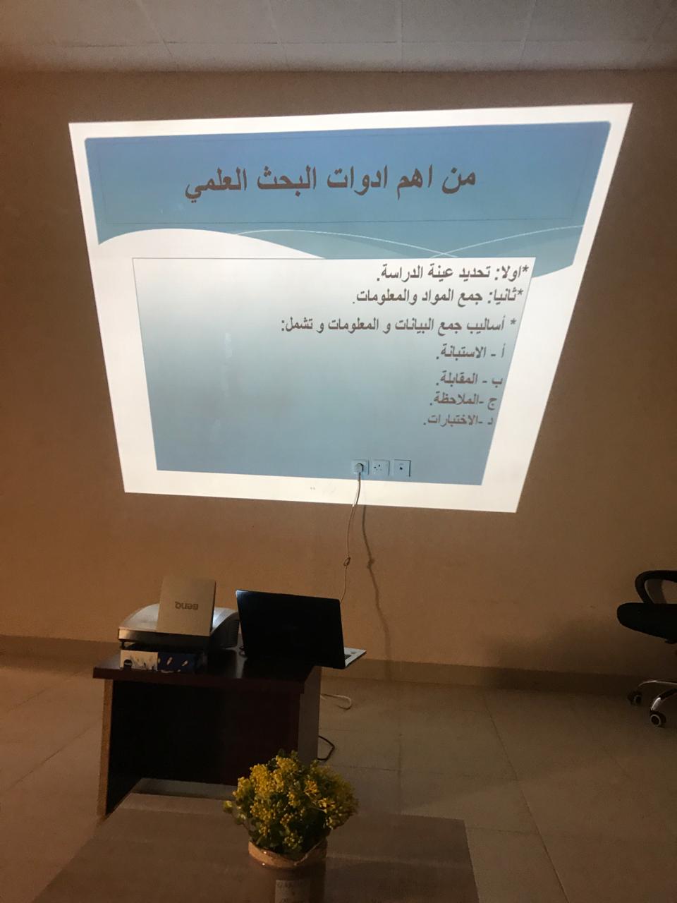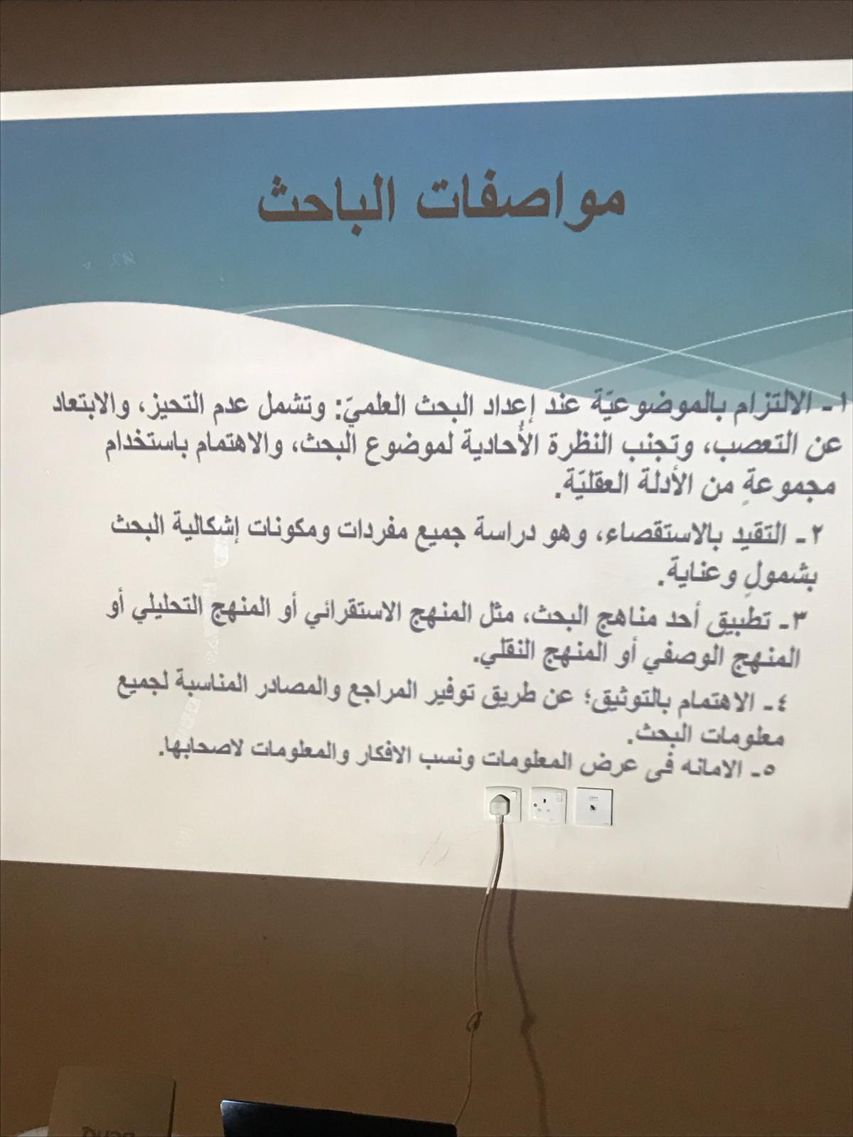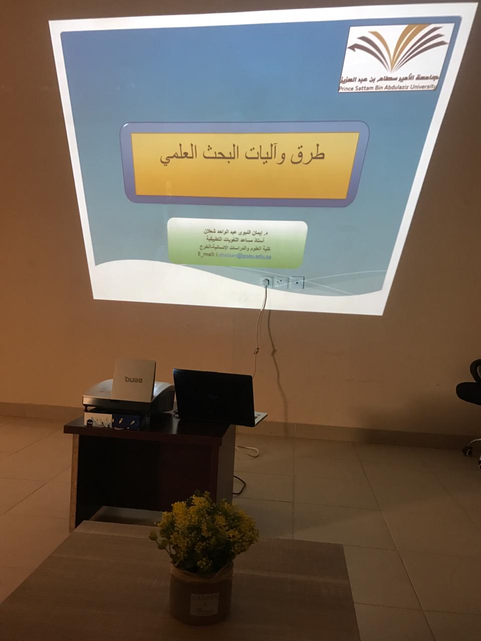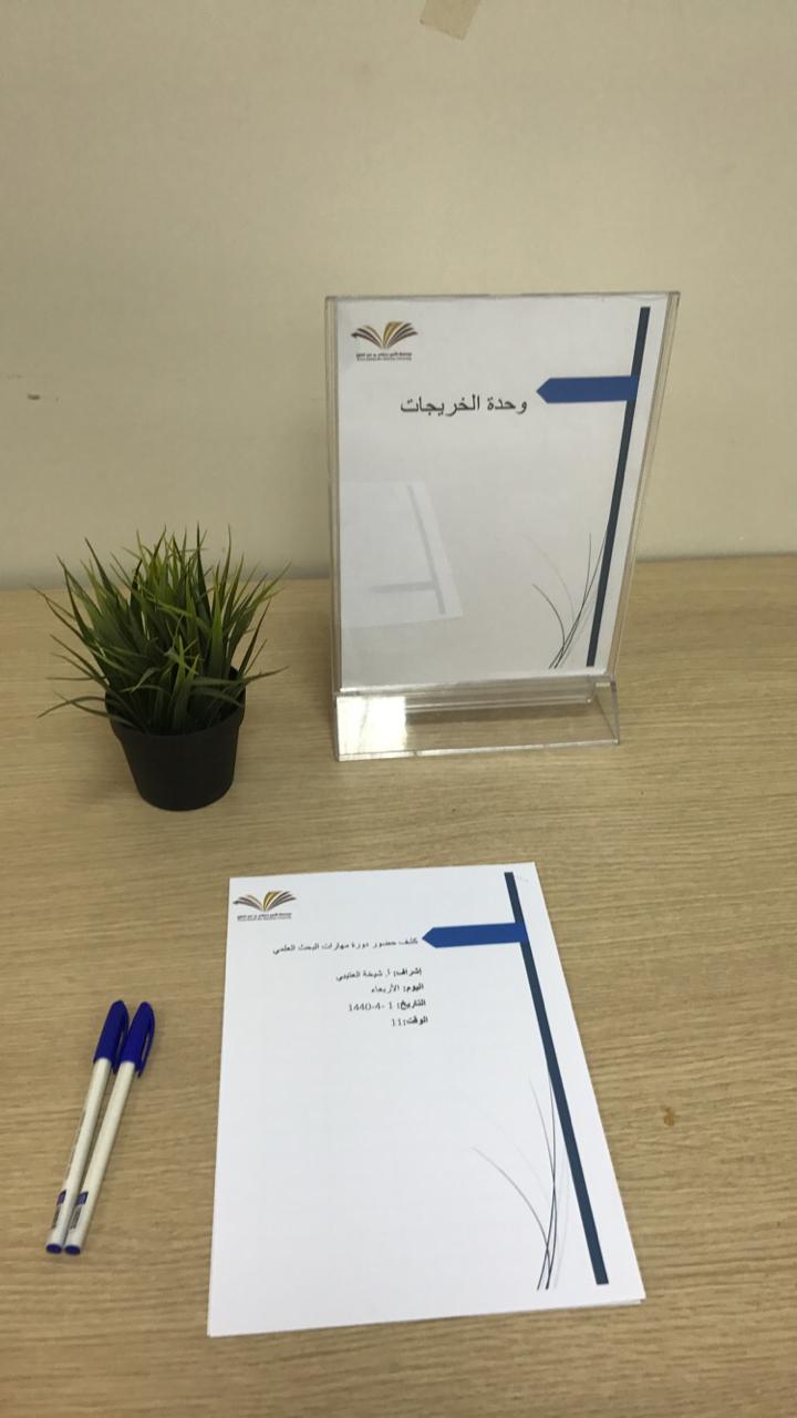 نظمت لجنة مشاريع التخرج بوحدة الخريجات بكلية إدارة الأعمال بالخرج يوم الأربعاء الموافق 1/ 6/ 1440 هـ دورة بعنوان مهارات البحث العلمي" قدمتها: د. إيمان النبوي شعلان ،أستاذ اللغويات المساعد بكلية العلوم والدراسات الإنسانية ؛ لتوعية الطالبات بالبحث العلمي وإجراءاته، حيث تناولت الدورة عدة محاور: التعريف بالبحث العلمي وأهميته ، التعريف بخطوات البحث العلمي، التعرف على بعض المواقع العلمية وطرق الاستفادة منها فى مجال البحث العلمي ، طرق توثيق البحث العلمي ،أخلاقيات البحث العلمي وخصائص الباحث.