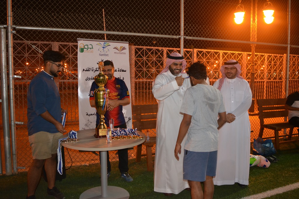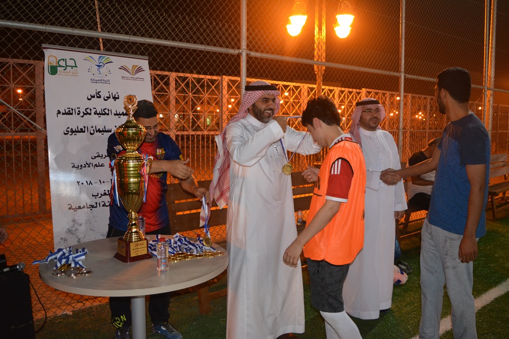 حقق فريق علم الأدوية مساء اليوم الأحد الموافق 28 / 10 / 2018م كأس بطولة سعادة عميد كلية الصيدلة الداخلية لكرة القدم والتي نظمتها وأشرفت عليها وحدة الأنشطة الطلابية والتي أقيمت واختتمت منافساتها على ملاعب الجامعة الرياضية وذلك عقب تغلبه على فريق المضادات بنتيجة (6/4)