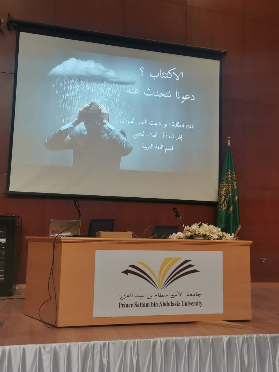 قدمته الطالبة/ نورة بنت ناصر العبودي وبإشراف أ.نجلاء العتيبي المحاضرة بقسم اللغة العربية وتهدف الى توعية الطالبات بمرض (الاكتئاب) وتعزيز الصحة النفسية لديهن.