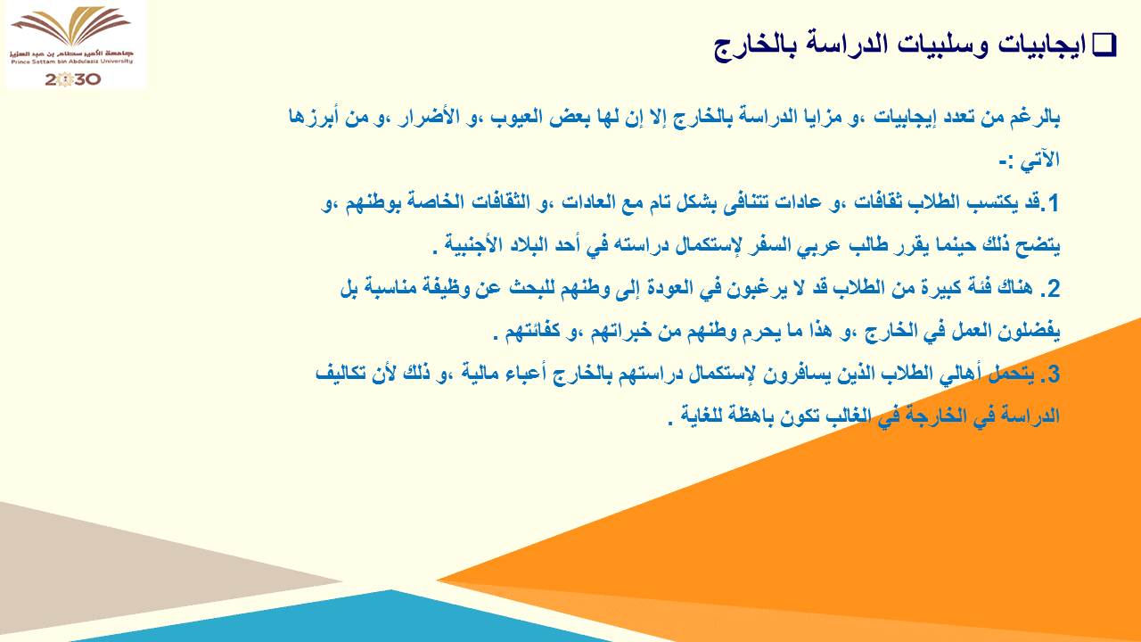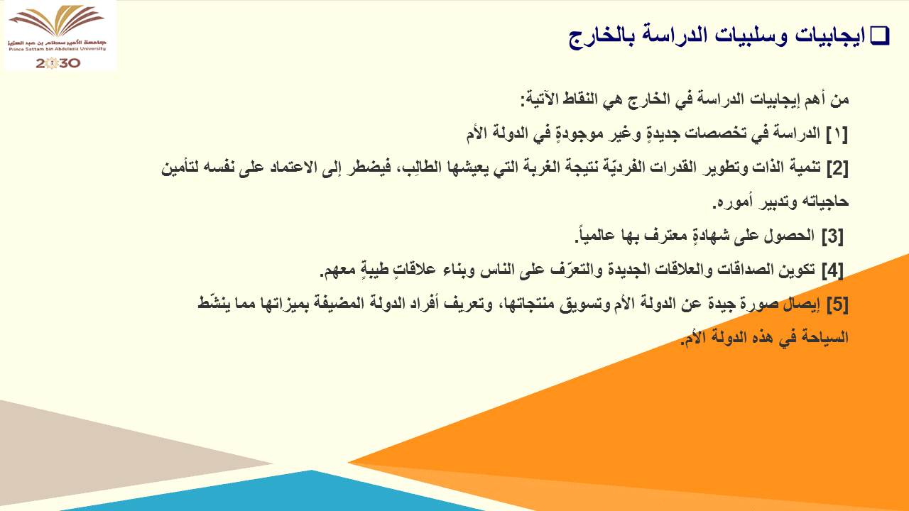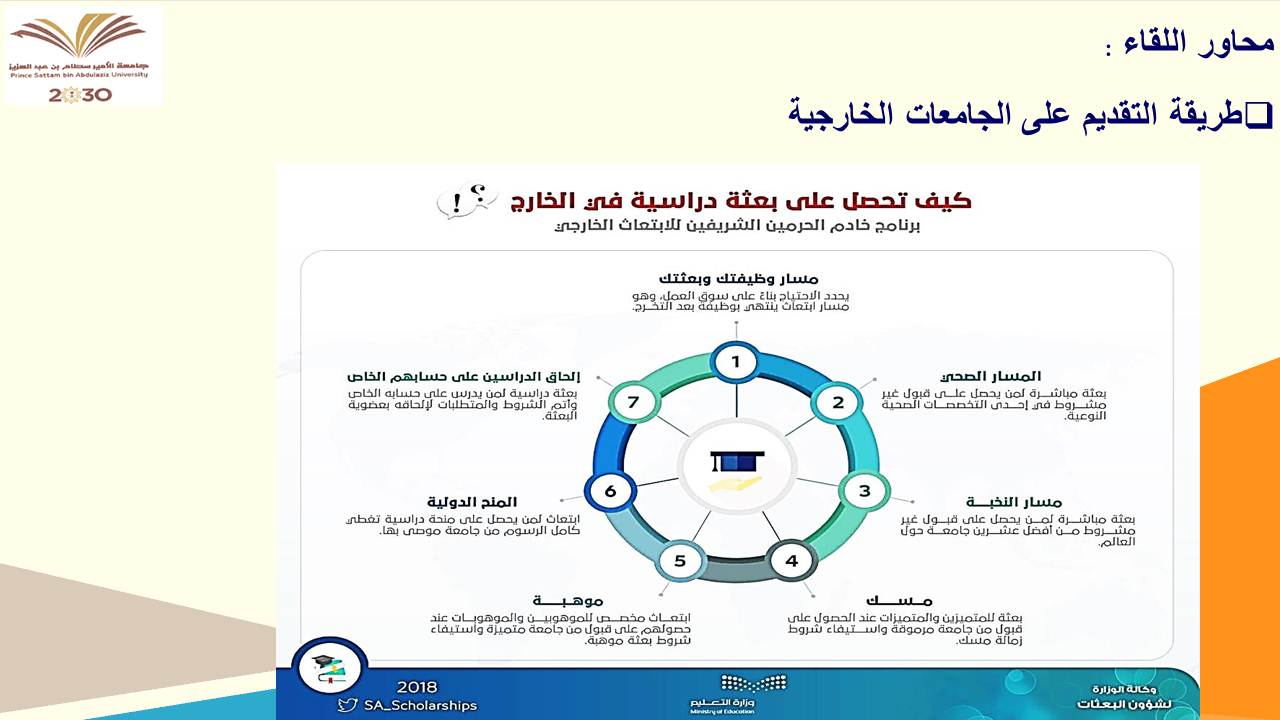 حيث كانت ضيفة اللقاء سعادة الدكتورة حنان عبد الله صالح البلوي وكيلة كلية الصيدلة وتم إعداد اللقاء من قبل الدكتورة سماح عبد العظيم منسقة اللجنة، وقد كان الهدف من هذا اللقاء هو تعريف الطالبات بكيفية التقديم على الجامعات الخارجية والتعريف بالحقوق والواجبات للمبتعث كذلك توضيح الإيجابيات والسلبيات للدراسة بالخارج كما تفضلت الدكتورة بالإجابة عن تساؤلات الطالبات التي طرحت في نهاية اللقاء.