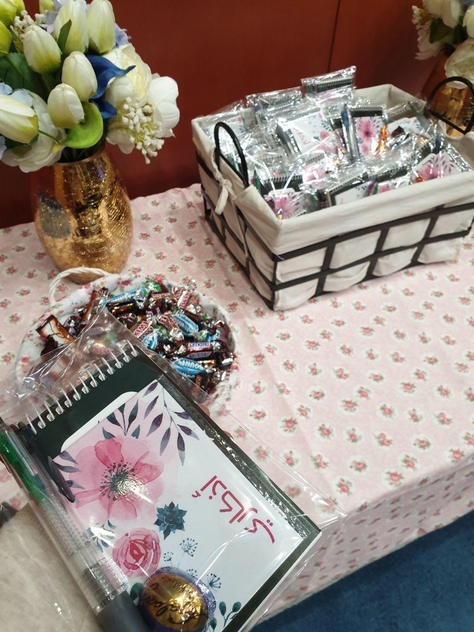 صاحب اللقاء ركن تعريفي احتوى على توزيعات قيمة تم توزيعها على الطالبات.