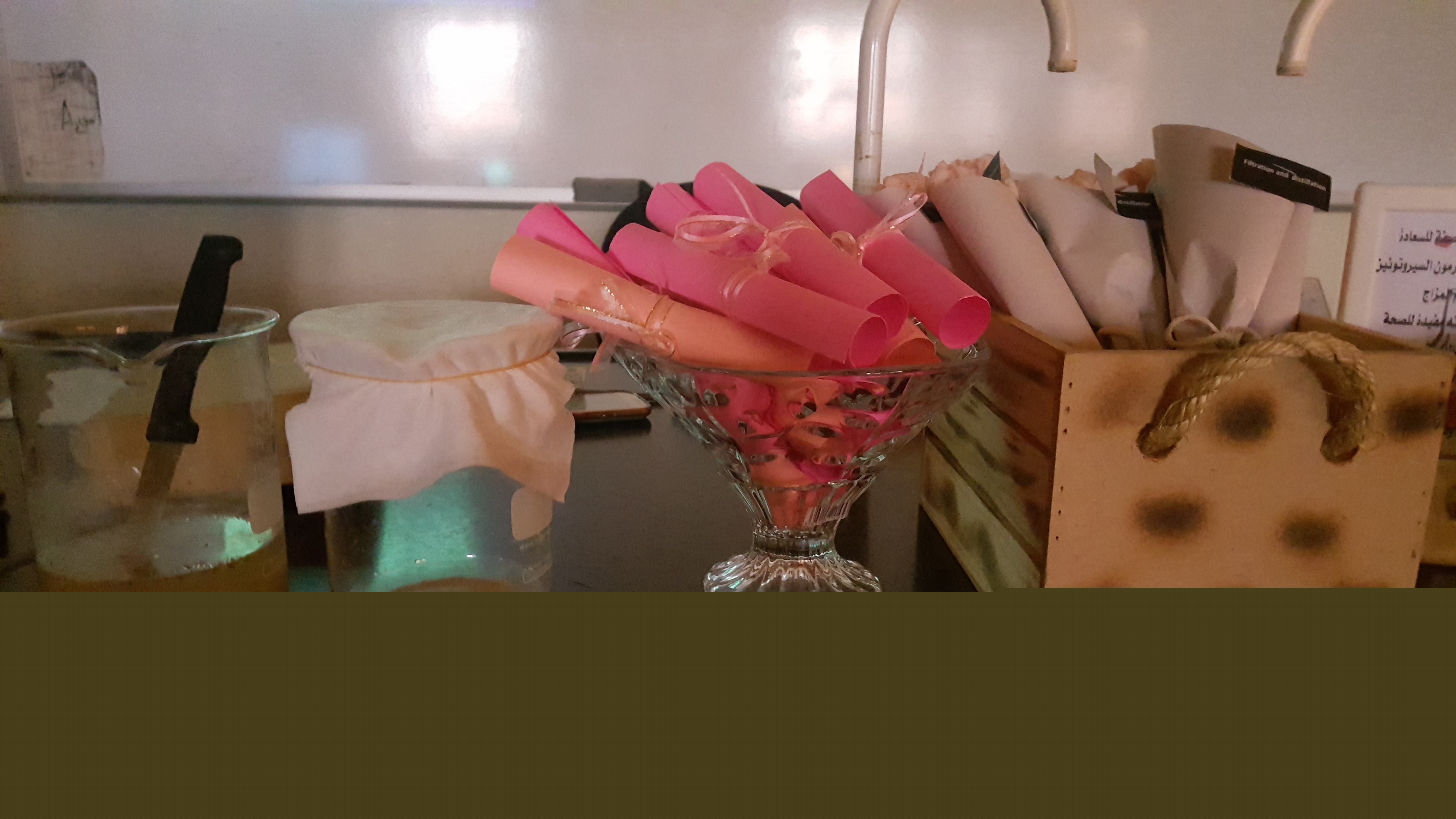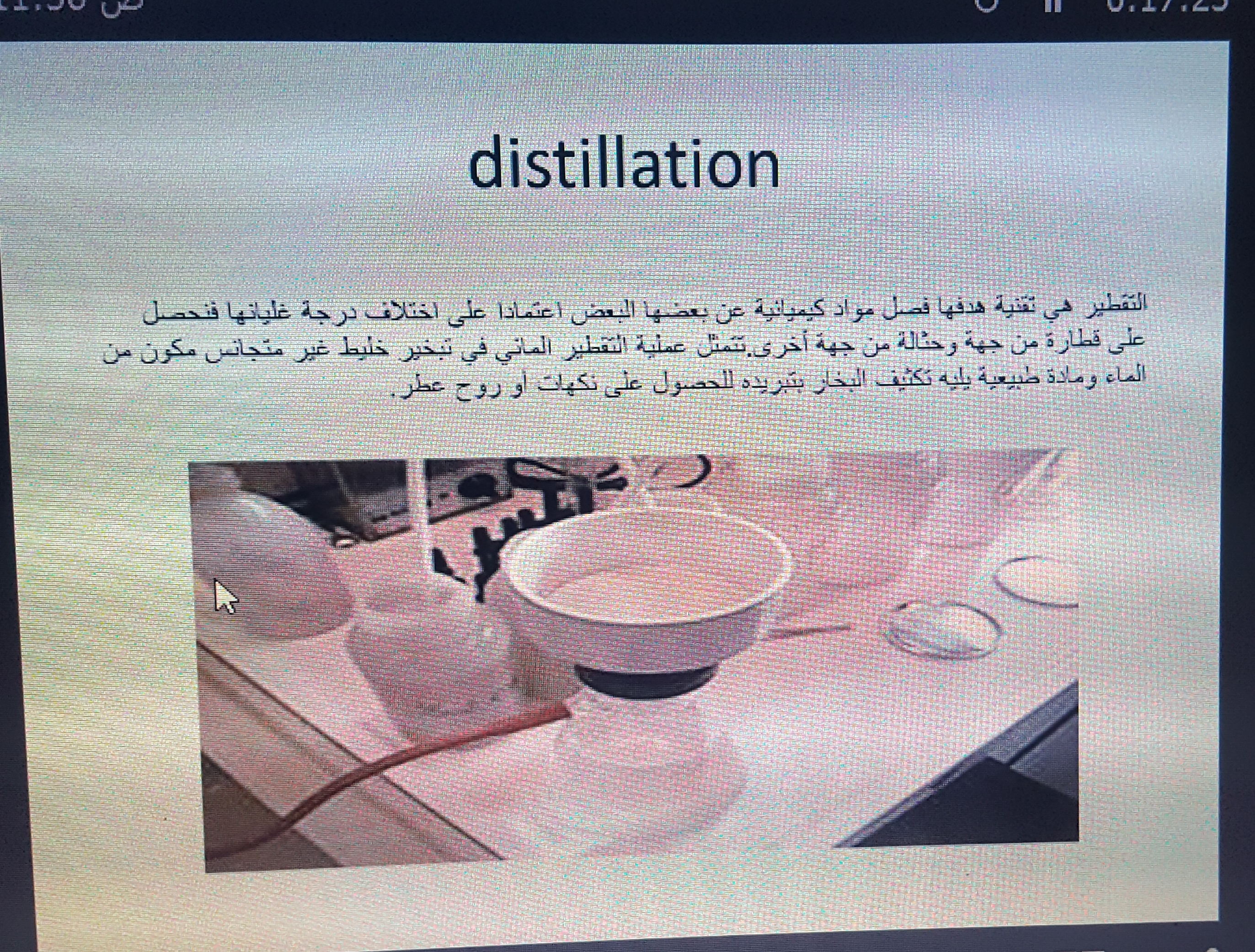 ( التقطير والترشيح ) تحت إشراف د.ناهد محمد عثمان ، وذلك يوم الأحد الموافق 29/7/1439 بمعمل الكيمياء بحضور جمع من الطالبات ، وعدد من عضوات هيئة التدريس بالكلية .