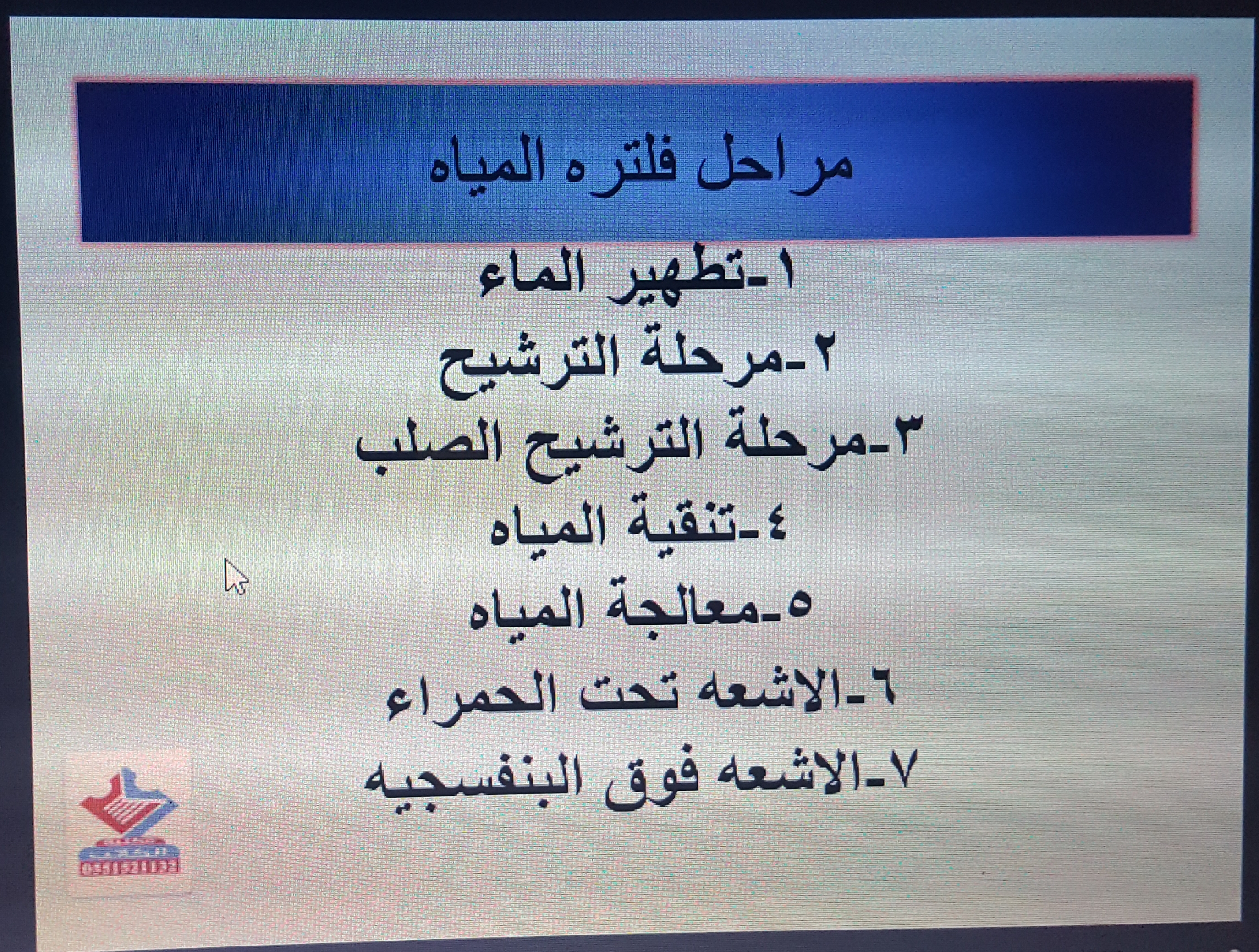 وكذلك شرح كيفية تنقية المياه باستخدام الأشعة فوق البنفسجية والأوزون.
