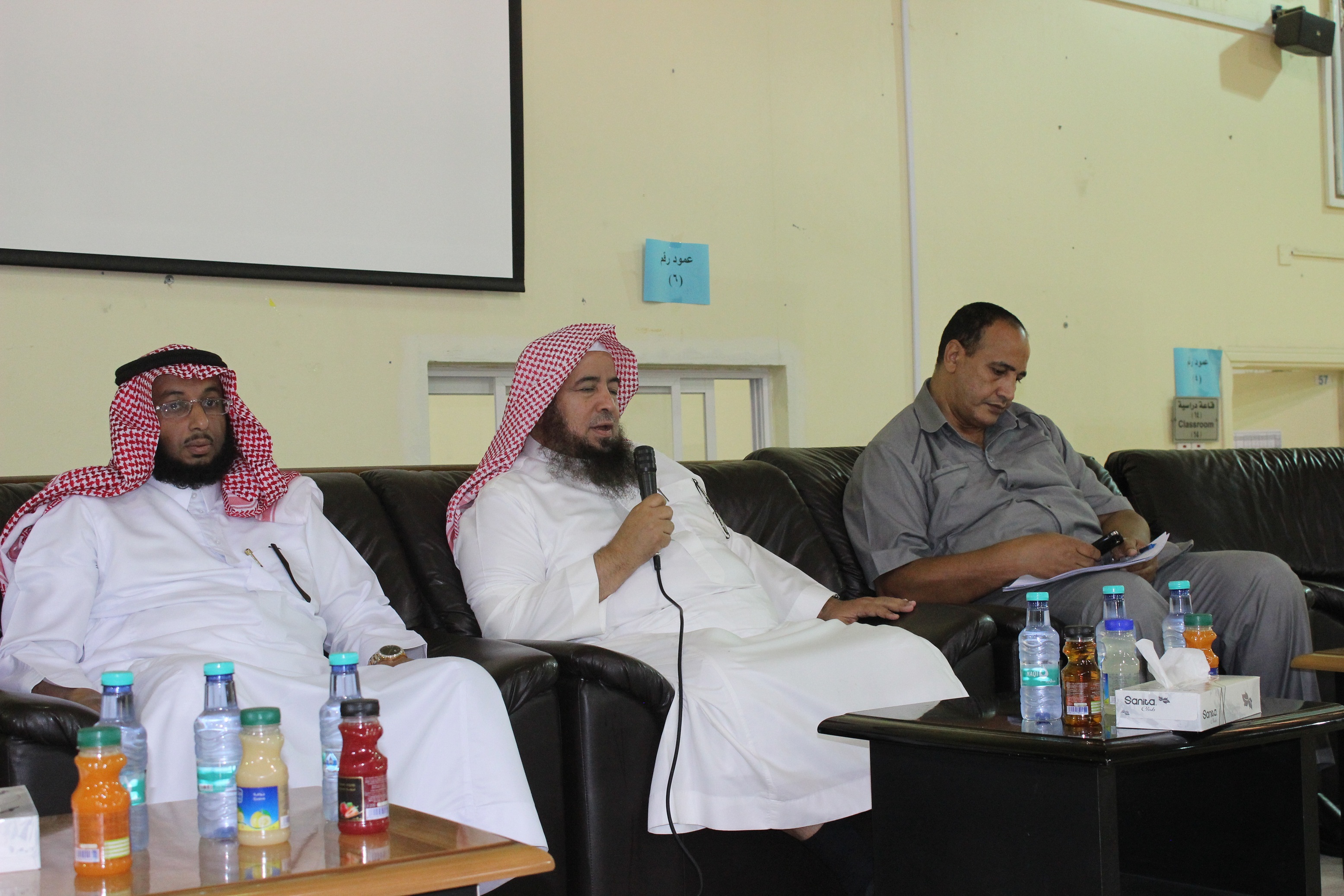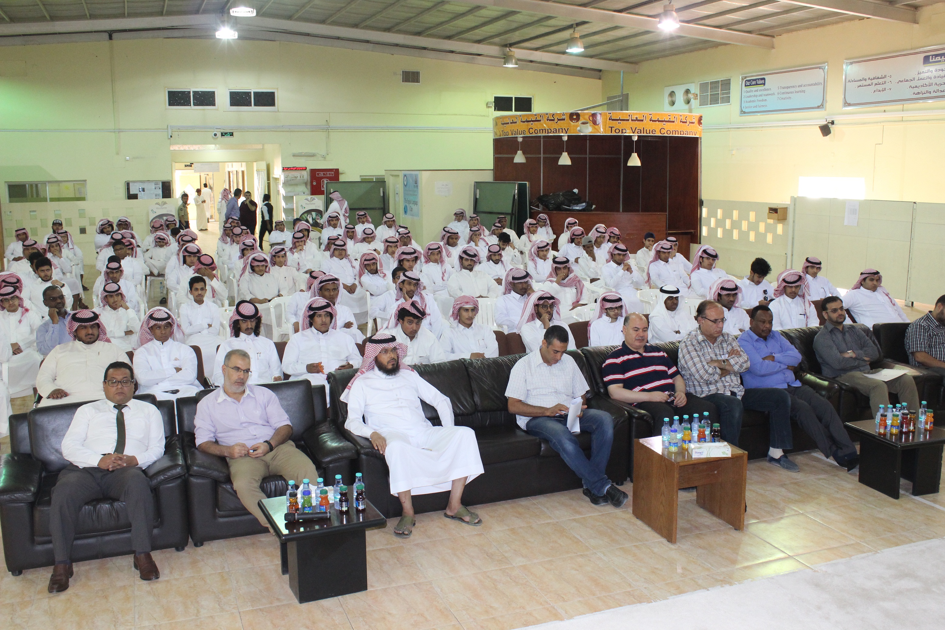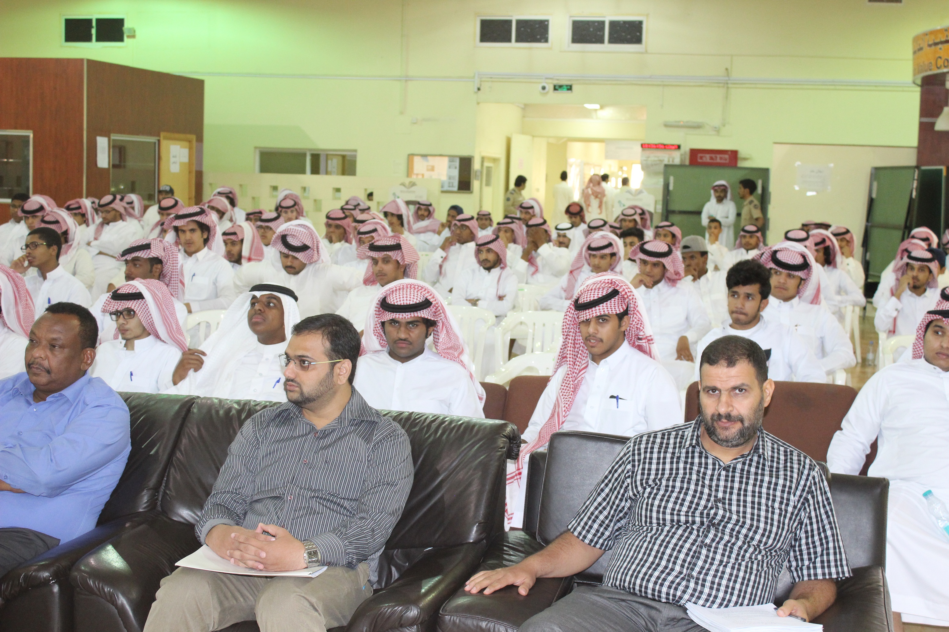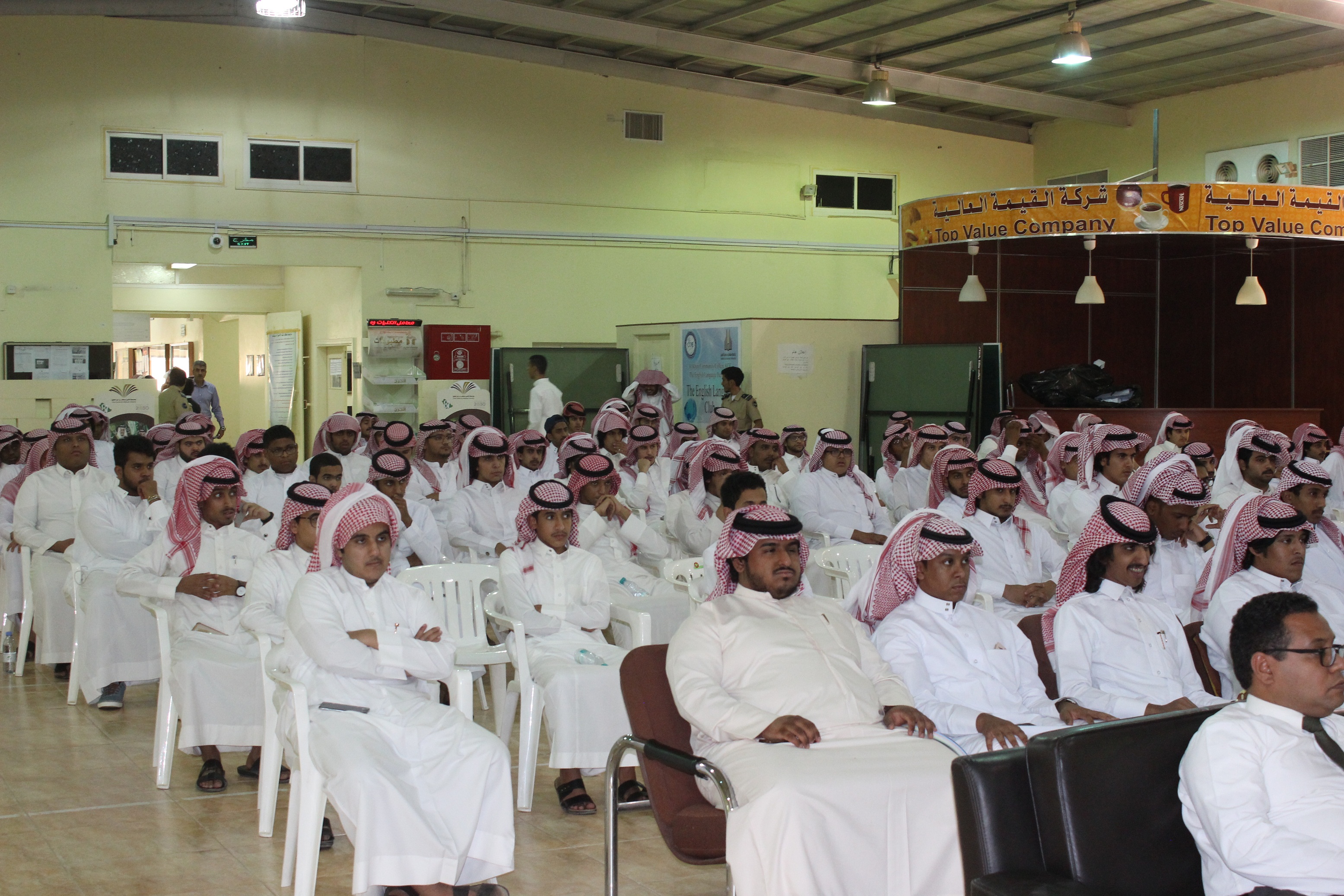 نظمت وحدة النشاط الطلابي بالكلية لقاًء مفتوحًا لسعادة عميد الكلية الدكتور/ سعيد بن نزال العنزي مع الطلاب المستجدين في البرامج المختلفة وذلك يوم الأربعاء الموافق 25/12/1439هـ في تمام الساعة العاشرة صباحًا ببهو الكلية بحضور سعادة وكيل الكلية للشؤون التعليمية والأكاديمية الدكتور/ناصر الشيحان ومشرفي الأقسام الأكاديمية وقد أكد سعادة عميد الكلية على ضرورة بذل الطلاب للهمة العالية والصبر حتى يمكنهم الحصول على أعلى المعدلات الدراسية، كما أكد سعادته على ضرورة معرفة الطلاب بالقوانين والإرشادات الطلابية المتعلقة بمواعيد الحذف الإضافة،والحرمان والفصل من الكلية, ومن جانبه أشار سعادة وكيل الكلية للشؤون التعليمية والأكاديمية إلى التحضير الالكتروني للطلاب وما يتطلبه ذلك من ضرورة التزام الطالب بالحضور حتى لا يتعرض للحرمان .كما قام مشرفو الأقسام الأكاديمية بإعطاء نبذة توضيحية للطلاب المستجدين عن طبيعة كل قسم من حيث المقررات الدراسية بالقسم والوظائف التي يوفرها كل برنامج لخريجيه وأهمية استفادة الطلاب من الإرشاد الأكاديمي بالكلية.