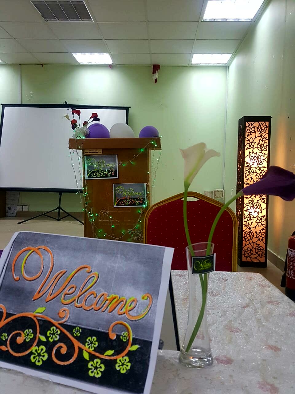 بتوجيه من سعادة الدكتور عبد الله الفالح عميد الكلية وإشراف سعادة الدكتورة سهير الباز وكيلة الكلية ،أقام قسم اللغة الانجليزية حفلاً لاستقبال الطالبات المستجدات وذللك يوم الأحد الموافق 9 / 2 / 1439 هـ بمسرح الكلية بمشاركة منسقة القسم و عضوات هيئة التدريس بقسم اللغة الإنجليزية وبحضور عدد من عضوات هيئة التدريس بالأقسام الأخرى