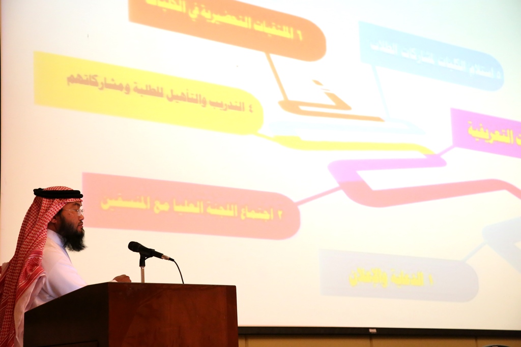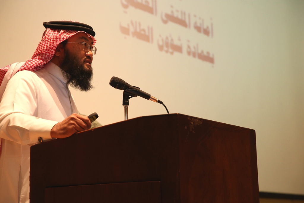 font-family:"Arial",sans-serif;color:#333333" xml:lang="AR-SA">حيث قدم أمين اللجنة العليا للملتقى العرض التعريفي عن الملتقى العلمي الثاني، مبيناً ماهيته ومعرفاً بأهداف تنظيم الجامعة له من حيث رفع المستوى العلمي والثقافي لدى الطلاب والطالبات، وتطوير مواهبهم وقدراتهم، والاستفادة من طاقاتهم ، وبناء شخصيات متكاملة نافعة للوطن والمجتمع، كما تحدث الدكتور بإيضاح عن محاور الملتقى ومساراته، مشيراً لأهمية تعاون أعضاء هيئة التدريس مع الطلاب في إعداد المشاركات ومدهم بالمعلومات من خلال التجارب والخبرات التي مر بها أعضاء هيئة التدريس في المحاور المختلفة ، كما ذكر الدكتور عمر بعض التنبيهات والملاحظات الهامة لإعداد المشاركات العلمية و الثقافية وغيرها من المحاور بطرق صحيحة سليمة مطابقة للشروط والضوابط .