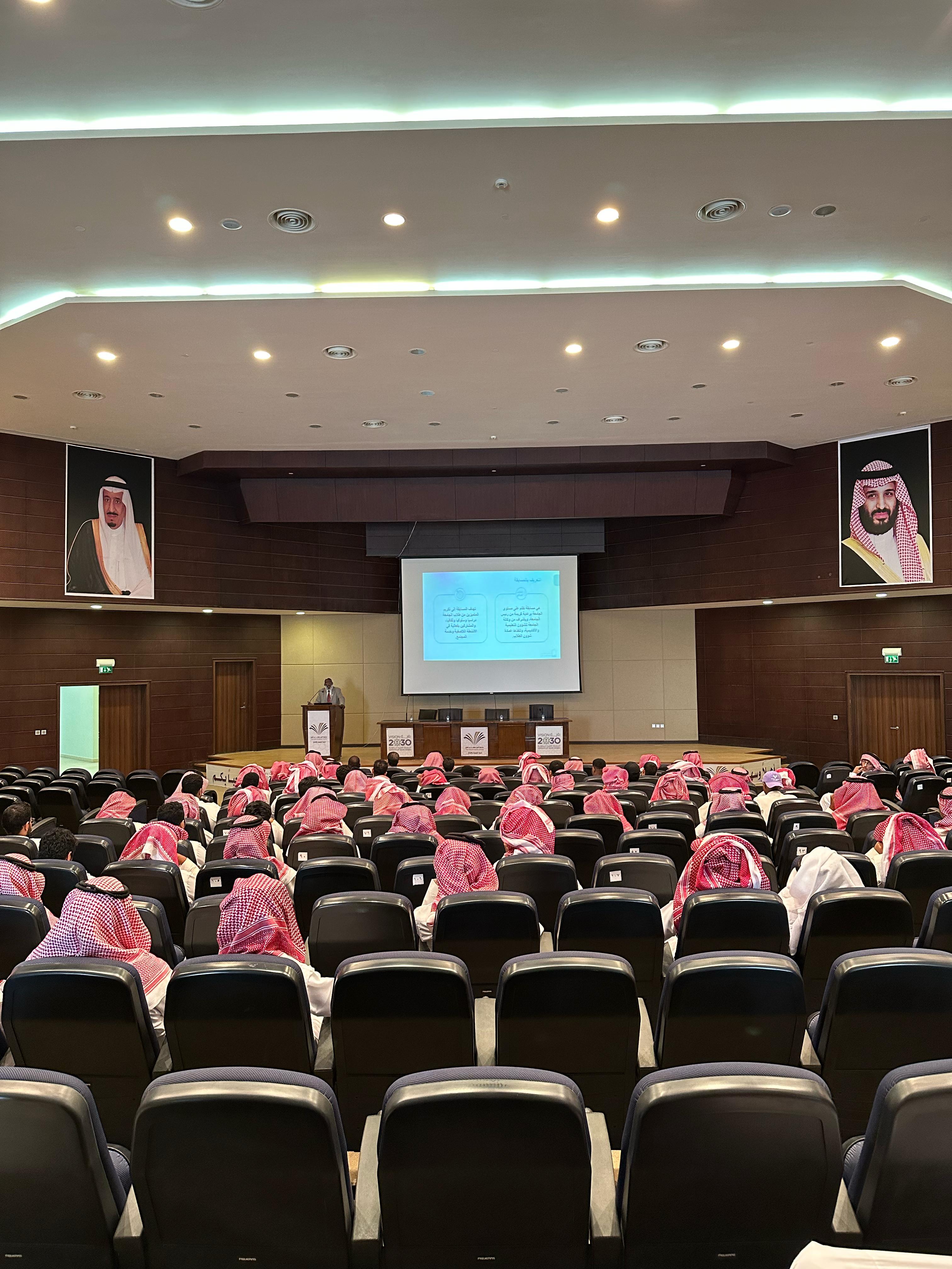 نظمت وحدة الأنشطة الطلابية بكلية العلوم والدراسات الإنسانية بالأفلاج صباح اليوم الأحد الموافق 1445/02/25 هـ بمسرح الكلية لقاءً تعريفيًا عن جائزة ومبادرة الطالب المثالي والتي تشرف عليها وكالة الجامعة للشؤون التعليمية والأكاديمية وتنفذها عمادة شؤون الطلاب والتي تعتبر أولى نسخ هذه الجائزة خلال هذا العام الجامعي 1445 هـ