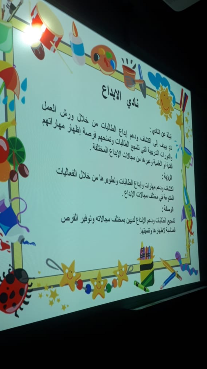 ثم تلاها كلمة للأخصائية الاجتماعية الأستاذة/ أفنان الرفاعي. حيث وضحت دور الأخصائية الاجتماعية والذي يشمل تقديم الرعاية الاجتماعية والصحية والاقتصادية للطالبات بالإضافة للاهتمام بتدريب وتطوير الطالبات.