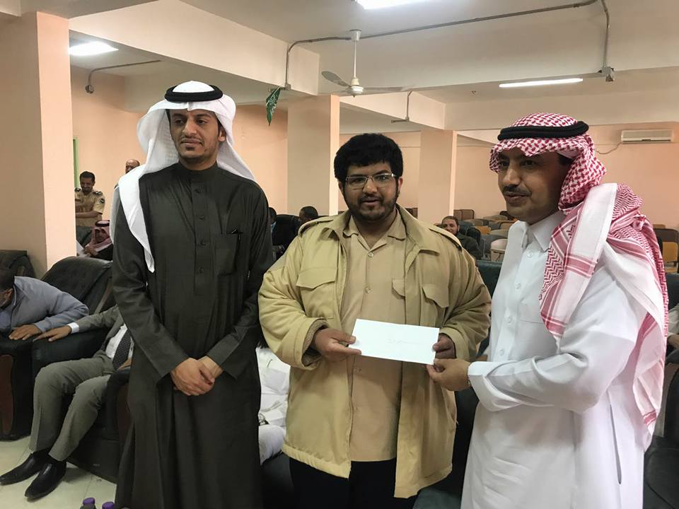 هذا وقد تخلل اللقاء سحوبات وجوائز للمشاركين قام بها كل من منسق الملتقى بالكلية الأستاذ مبارك محمد آل بخيتان ومدير الإدارة للكلية الأستاذ عبدالله محمد العمور .