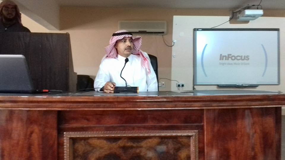 بدأ اللقاء بكلمة للدكتور /عبدالفتاح أحمد خلف مشرف الأنشطة الطلابية والمنسق الإعلامي بالكلية موضحاً أن جامعة الأمير سطام بن عبدالعزيز منذ نشأتها دأبت على تحقيق وترسيخ أهداف واستراتيجيات طموحة ، وامتداداً لهذه الأهداف وإيماناً منها بأهمية التطوير والتميز وتحقيقاً للإستراتيجيات التي وضعتها إدارة الجامعة, أولت الجامعة اللقاءات العلمية اهتماماً كبيراً - مواكبة لهذا التوجه والهدف.